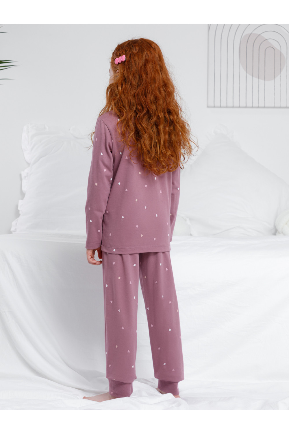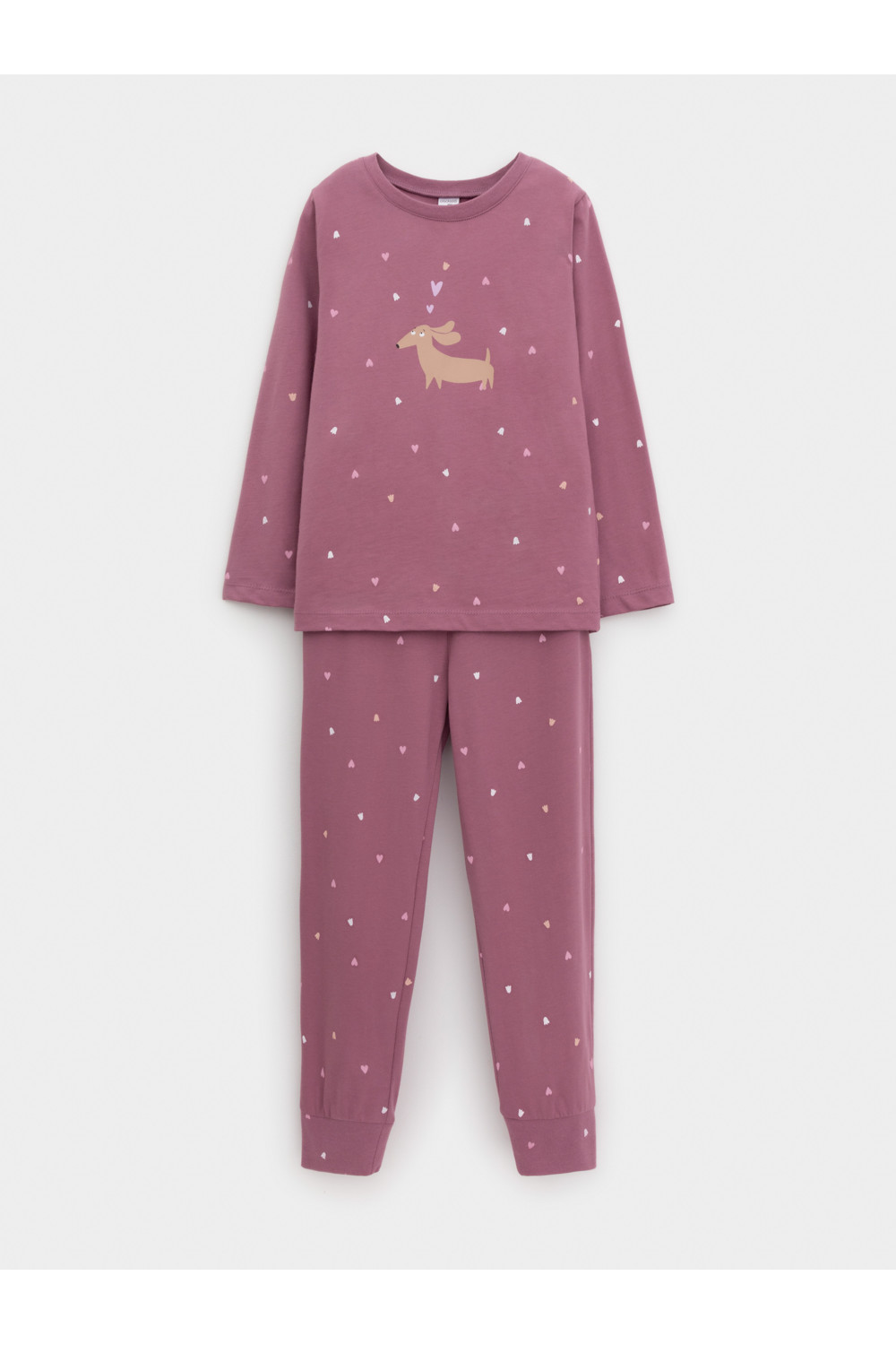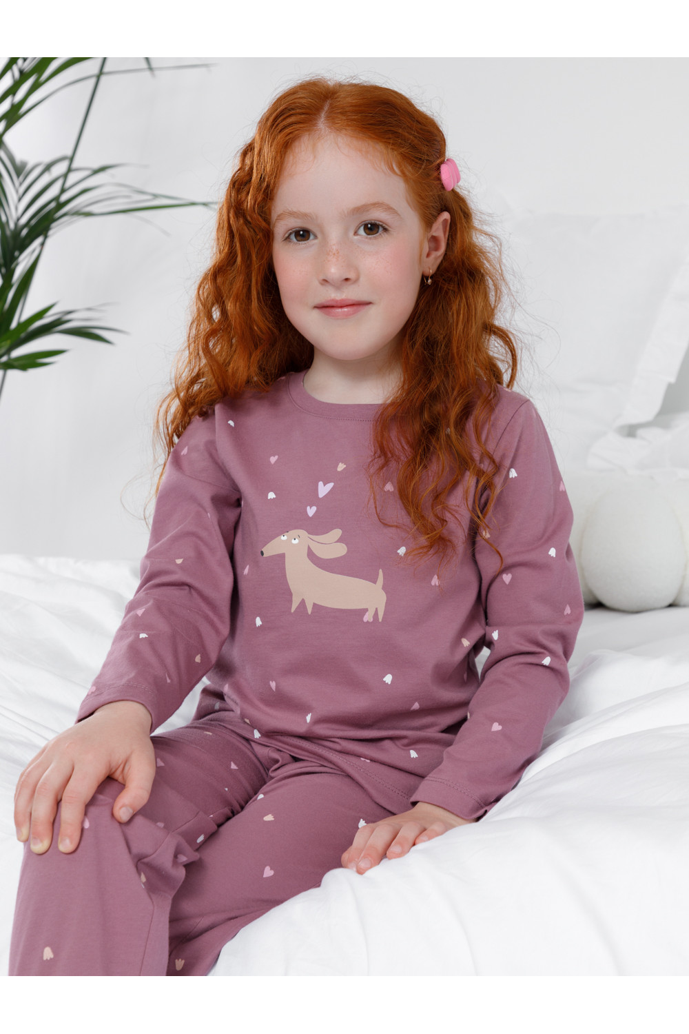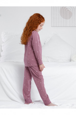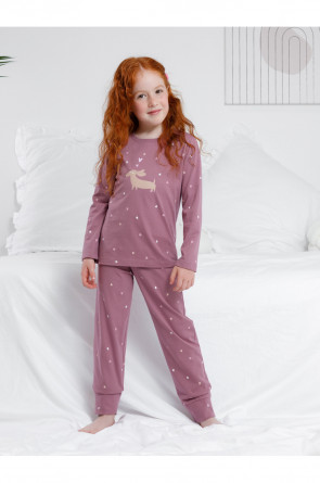 Пижама для девочки из натурального хлопка. Джемпер с длинными втачными рукавами и брюки с эластичной резинкой в поясе. Мягкие манжеты по низу брюк сделаны из материала в рубчик. Оригинальная набивка и принт выполнены из стойких текстильных гипоаллергенных красителей. Изделие сохраняет цвет и форму после многократных стирок. Все трикотажные полотна производятся в соответствии с нормами швейцарского сертификата ЭкоТекс.