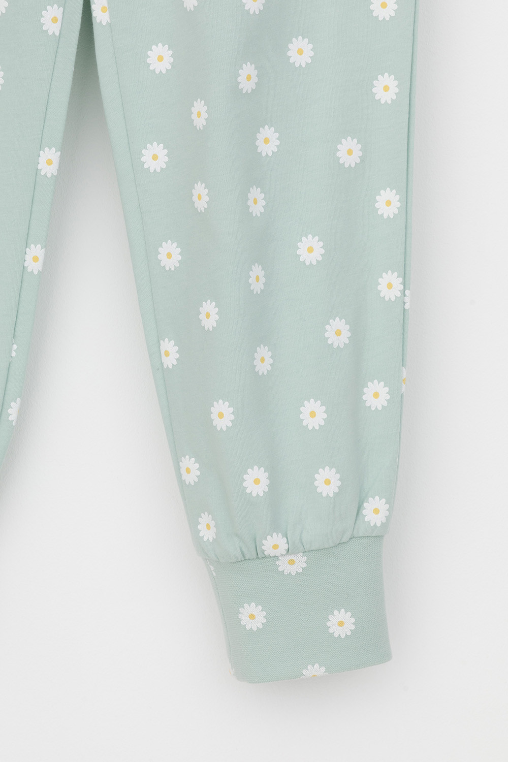 Трикотажная пижама из натурального хлопка. Джемпер с длинными втачными рукавами и брюки с эластичной резинкой в поясе. Мягкие манжеты по низу брюк. Оригинальные набивка и принт выполнены из стойких гипоаллергенных текстильных гипоаллергенных красителей. Изделие сохраняет цвет и форму после многократных стирок. Все трикотажные полотна производятся в соответсвии с нормами швейцарского сертификата ЭкоТекс.
