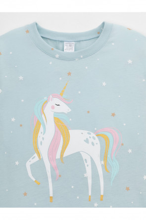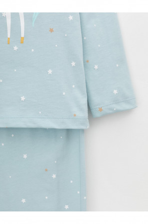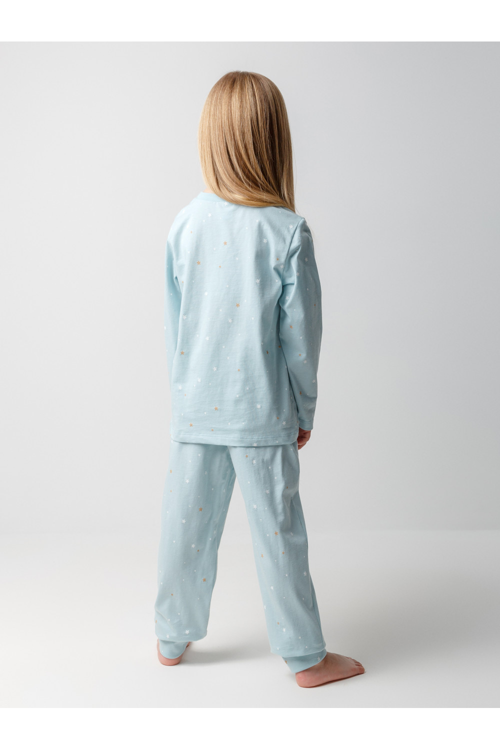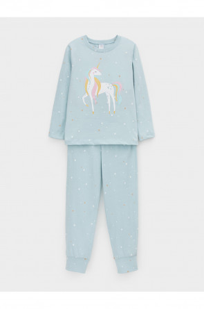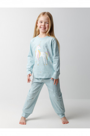 Трикотажная пижама из натурального хлопка. Джемпер с длинными втачными рукавами и брюки с эластичной резинкой в поясе. Мягкие манжеты по низу брюк. Оригинальные набивка и принт выполнены из стойких гипоаллергенных текстильных гипоаллергенных красителей. Изделие сохраняет цвет и форму после многократных стирок. Все трикотажные полотна производятся в соответсвии с нормами швейцарского сертификата ЭкоТекс.