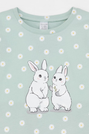 Трикотажная пижама из натурального хлопка. Джемпер с длинными втачными рукавами и брюки с эластичной резинкой в поясе. Мягкие манжеты по низу брюк. Оригинальные набивка и принт выполнены из стойких гипоаллергенных текстильных гипоаллергенных красителей. Изделие сохраняет цвет и форму после многократных стирок. Все трикотажные полотна производятся в соответсвии с нормами швейцарского сертификата ЭкоТекс.