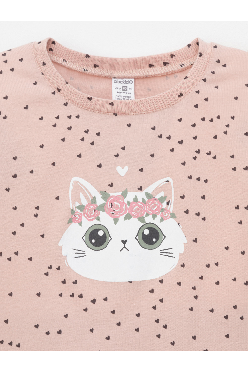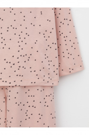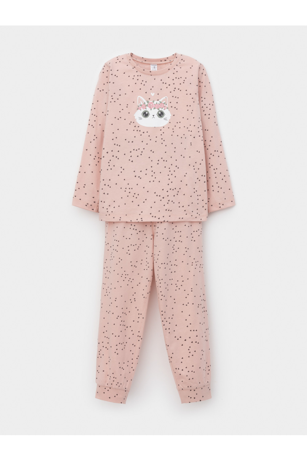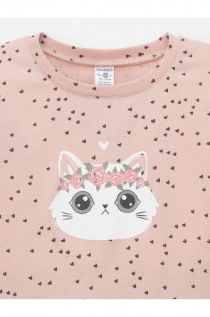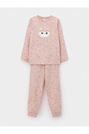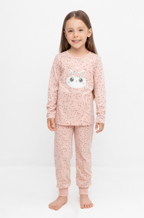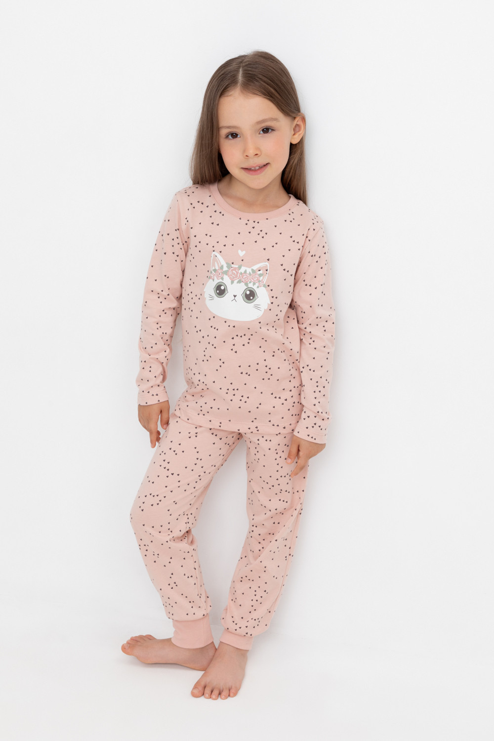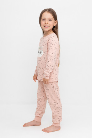 Пижама для девочки из натурального хлопка. Джемпер с длинными втачными рукавами и брюки с эластичной резинкой в поясе. Мягкие манжеты по низу брюк сделаны из материала в рубчик. Оригинальная набивка и принт выполнены из стойких текстильных гипоаллергенных красителей. Изделие сохраняет цвет и форму после многократных стирок. Все трикотажные полотна производятся в соответствии с нормами швейцарского сертификата ЭкоТекс.