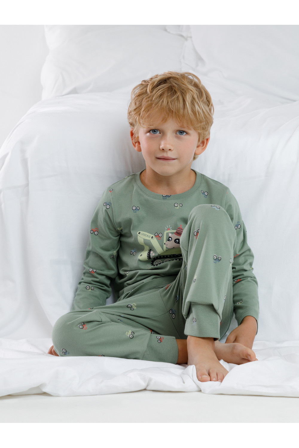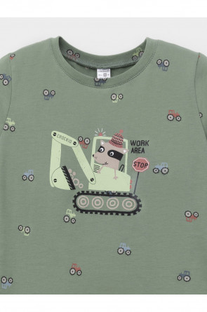 Пижама для мальчика из натурального хлопка. Джемпер с длинными втачными рукавами и брюки с эластичной резинкой в поясе. Мягкие манжеты по низу брюк сделаны из материала в рубчик. Оригинальная набивка и принт выполнены из стойких текстильных гипоаллергенных красителей. Изделие сохраняет цвет и форму после многократных стирок. Все трикотажные полотна производятся в соответствии с нормами швейцарского сертификата ЭкоТекс.