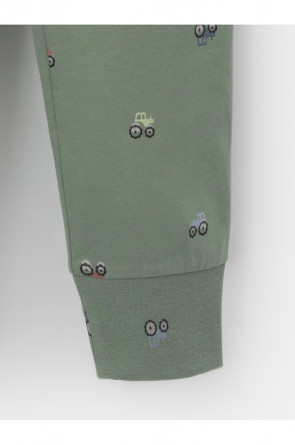 Пижама для мальчика из натурального хлопка. Джемпер с длинными втачными рукавами и брюки с эластичной резинкой в поясе. Мягкие манжеты по низу брюк сделаны из материала в рубчик. Оригинальная набивка и принт выполнены из стойких текстильных гипоаллергенных красителей. Изделие сохраняет цвет и форму после многократных стирок. Все трикотажные полотна производятся в соответствии с нормами швейцарского сертификата ЭкоТекс.