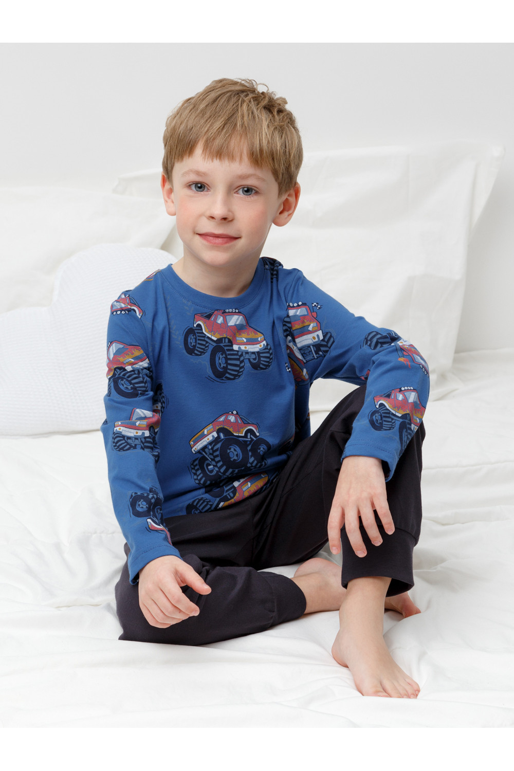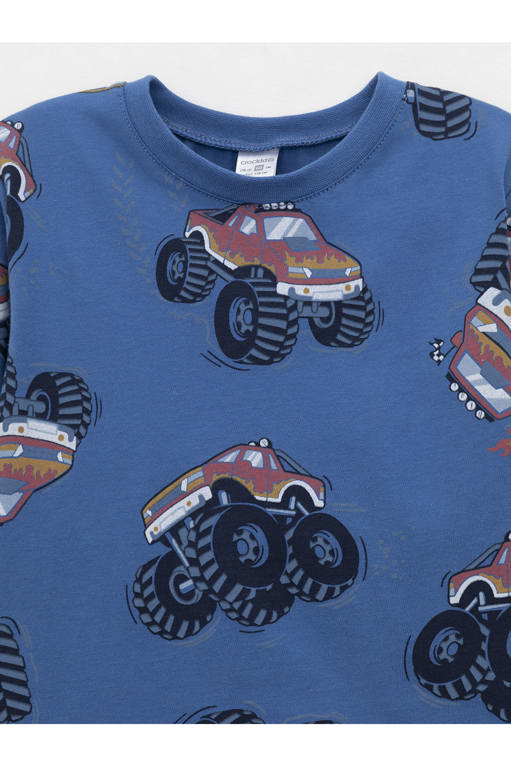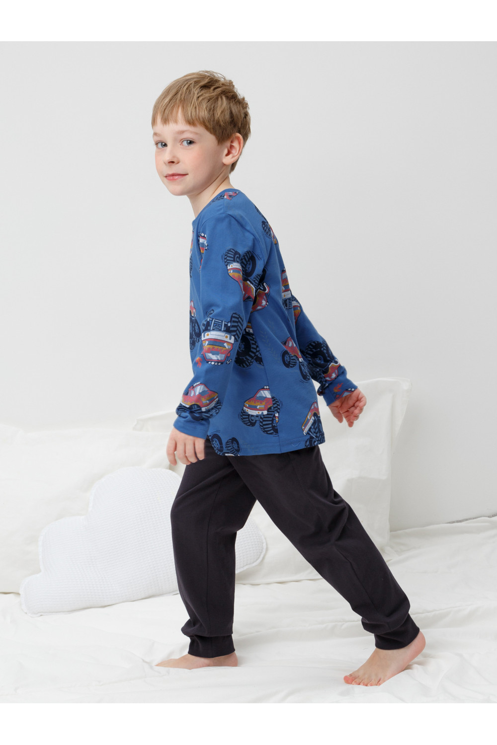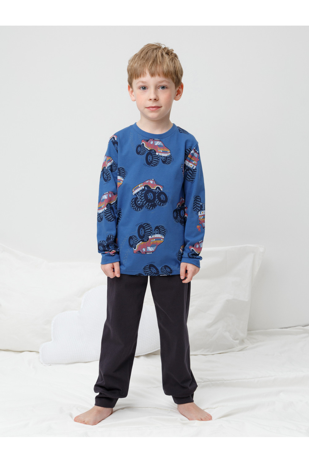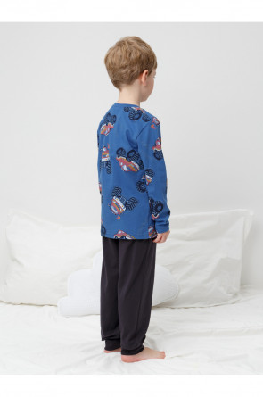 Трикотажная пижама из натурального хлопка. Джемпер с длинными рукавами. У брюк эластичный пояс на резинке, эластичные манжеты. Оригинальная набивка выполнена из стойких, гипоаллергенных текстильных красителей. Пижама сохраняет цвет и форму после многократных стирок. Все трикотажные полотна производятся в соответсвии с нормами Швейцарского сертификата ЭкоТекс.