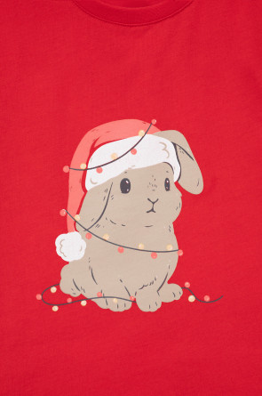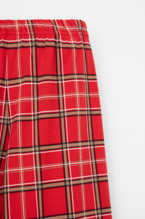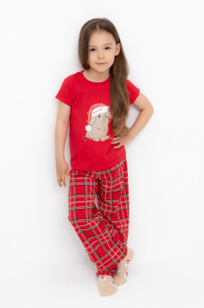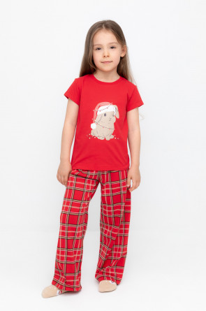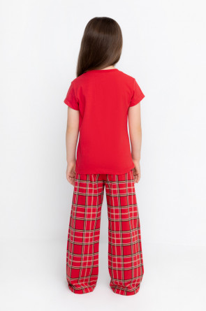Трикотажная пижама из натурального хлопка. Футболка с принтом и короткими втачными рукавами. У брюк в комплекте мягкий, эластичный пояс на резинке. Оригинальная набивка выполнена из стойких, гипоаллергенных текстильных красителей. Комплект сохраняет цвет и форму после многократных стирок. Все трикотажные полотна производятся в соответсвии с нормами Швейцарского сертификата ЭкоТекс.
