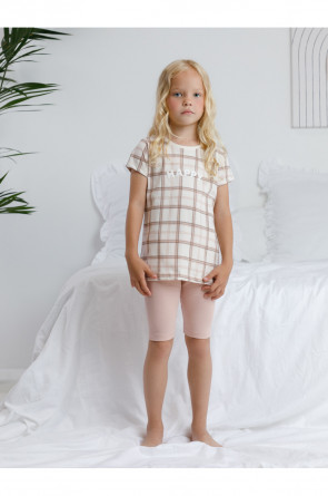 Трикотажная пижама из натурального хлопка. Удлиненная футболка с оригинальным принтом и спущенной линией плеч. У бридж в комплекте мягкий, эластичный пояс на резинке. Оригинальная набивка выполнена из стойких, гипоаллергенных текстильных красителей. Комплект сохраняет цвет и форму после многократных стирок. Все трикотажные полотна производятся в соответсвии с нормами Швейцарского сертификата ЭкоТекс.