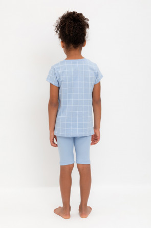 Трикотажная пижама из натурального хлопка. Удлиненная футболка с оригинальным принтом и спущенной линией плеч. У бридж в комплекте мягкий, эластичный пояс на резинке. Оригинальная набивка выполнена из стойких, гипоаллергенных текстильных красителей. Комплект сохраняет цвет и форму после многократных стирок. Все трикотажные полотна производятся в соответсвии с нормами Швейцарского сертификата ЭкоТекс.