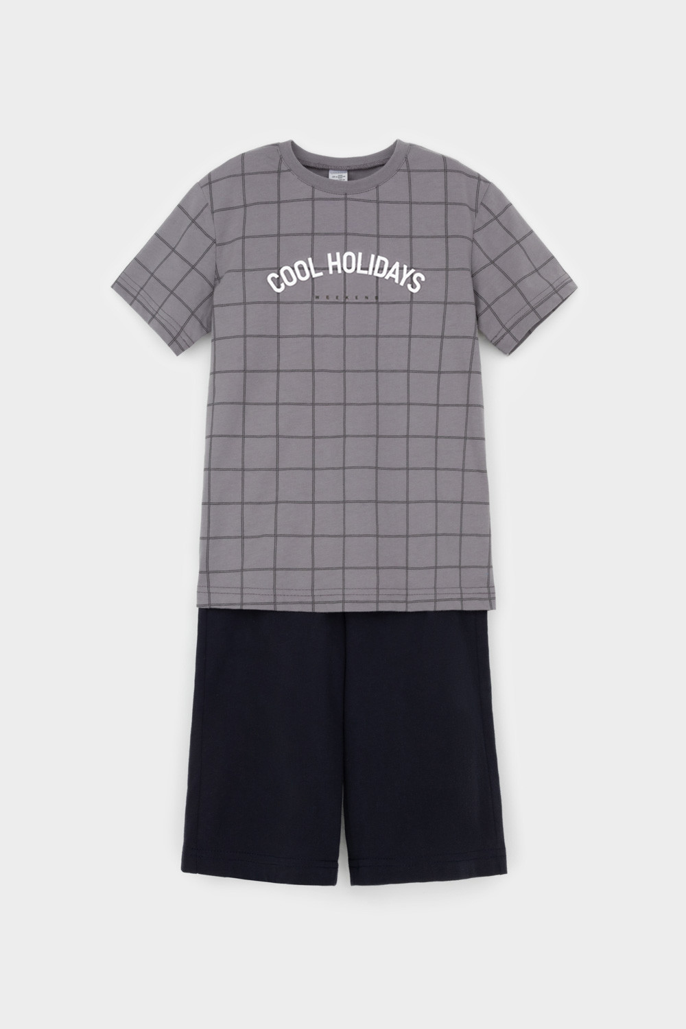 Трикотажная пижама из натурального хлопка. Футболка с короткими рукавами. У шорт эластичный пояс на резинке. Оригинальные принт и набивка выполнены из стойких, гипоаллергенных текстильных красителей. Пижама сохраняет цвет и форму после многократных стирок. Все трикотажные полотна производятся в соответсвии с нормами Швейцарского сертификата ЭкоТекс.