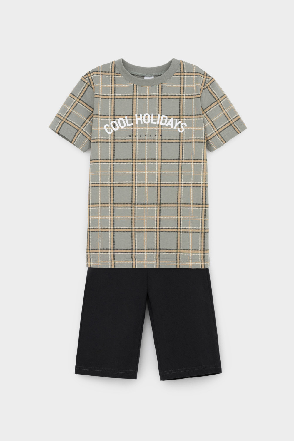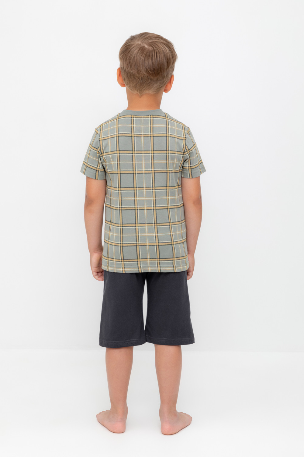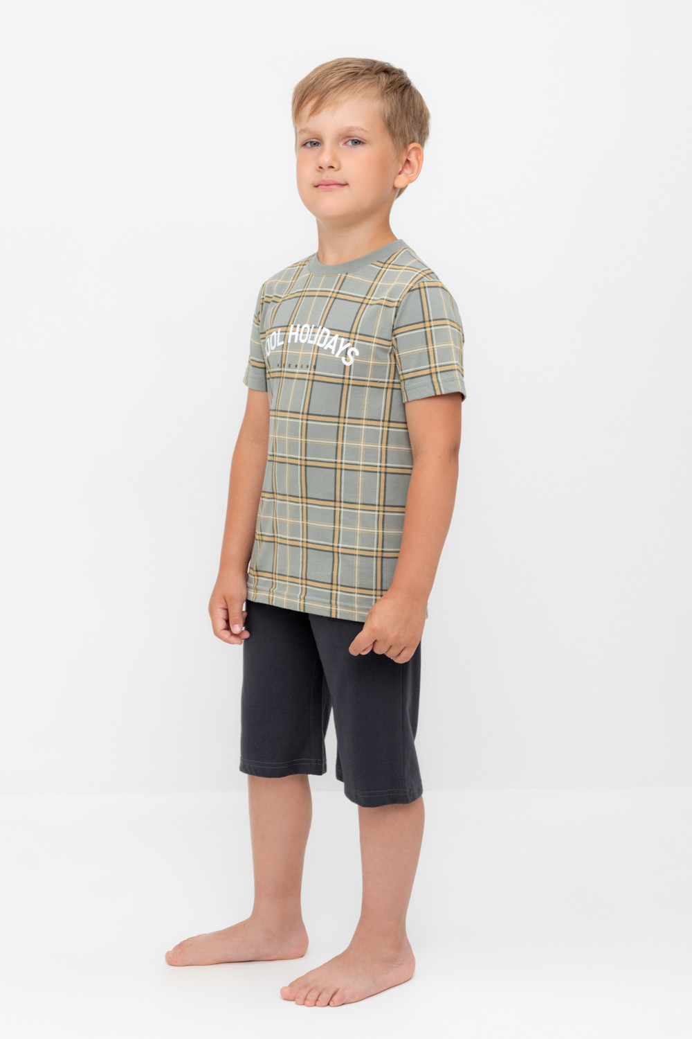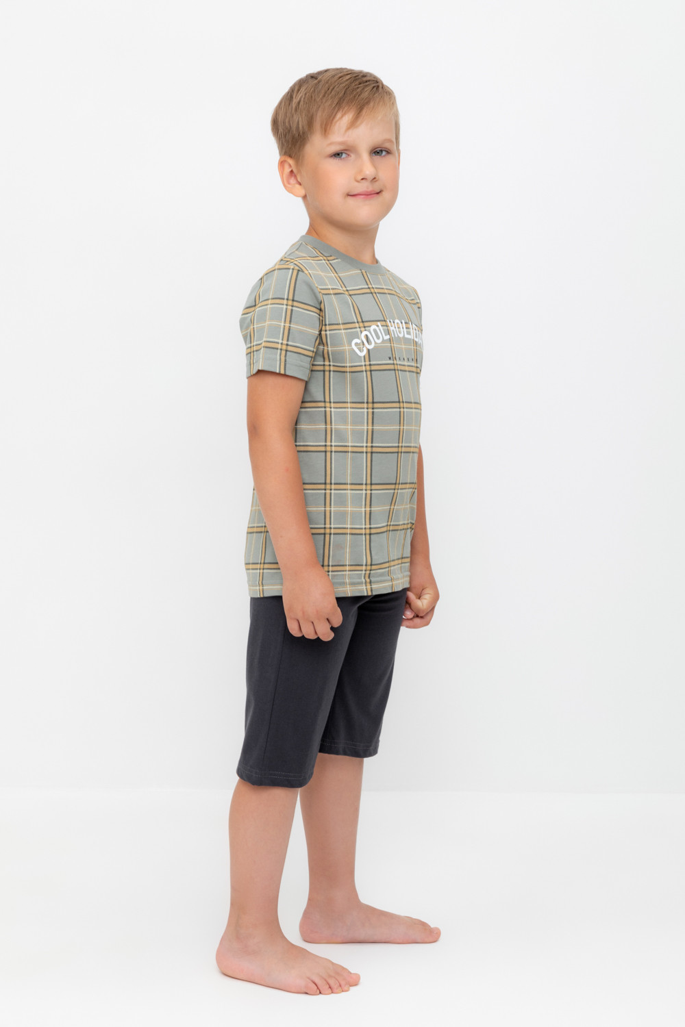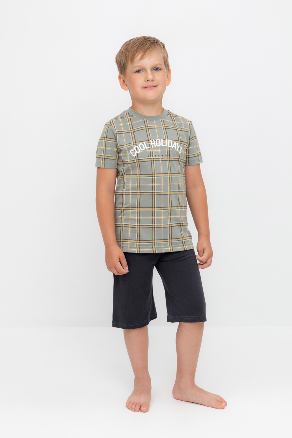 Трикотажная пижама из натурального хлопка. Футболка с короткими рукавами. У шорт эластичный пояс на резинке. Оригинальные принт и набивка выполнены из стойких, гипоаллергенных текстильных красителей. Пижама сохраняет цвет и форму после многократных стирок. Все трикотажные полотна производятся в соответсвии с нормами Швейцарского сертификата ЭкоТекс.