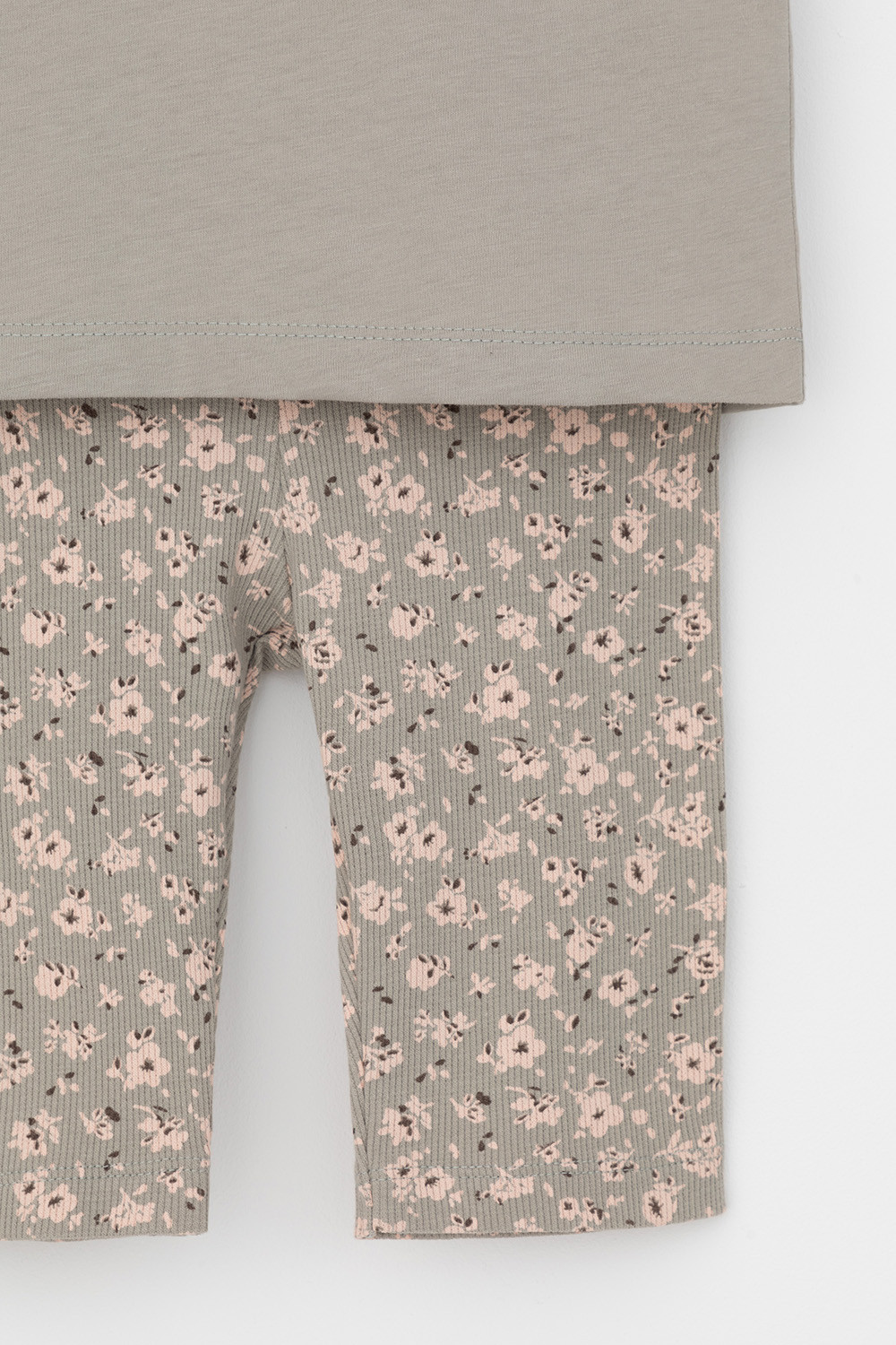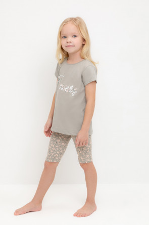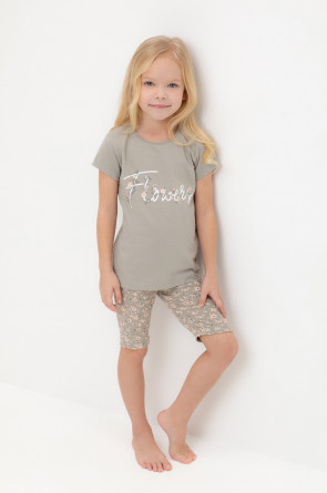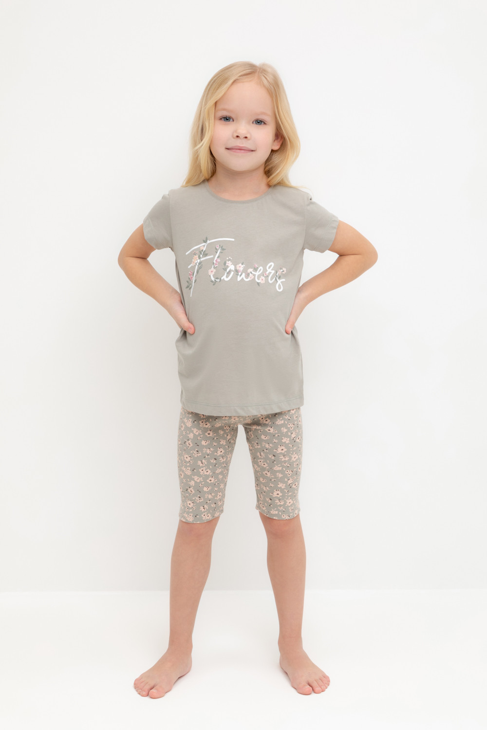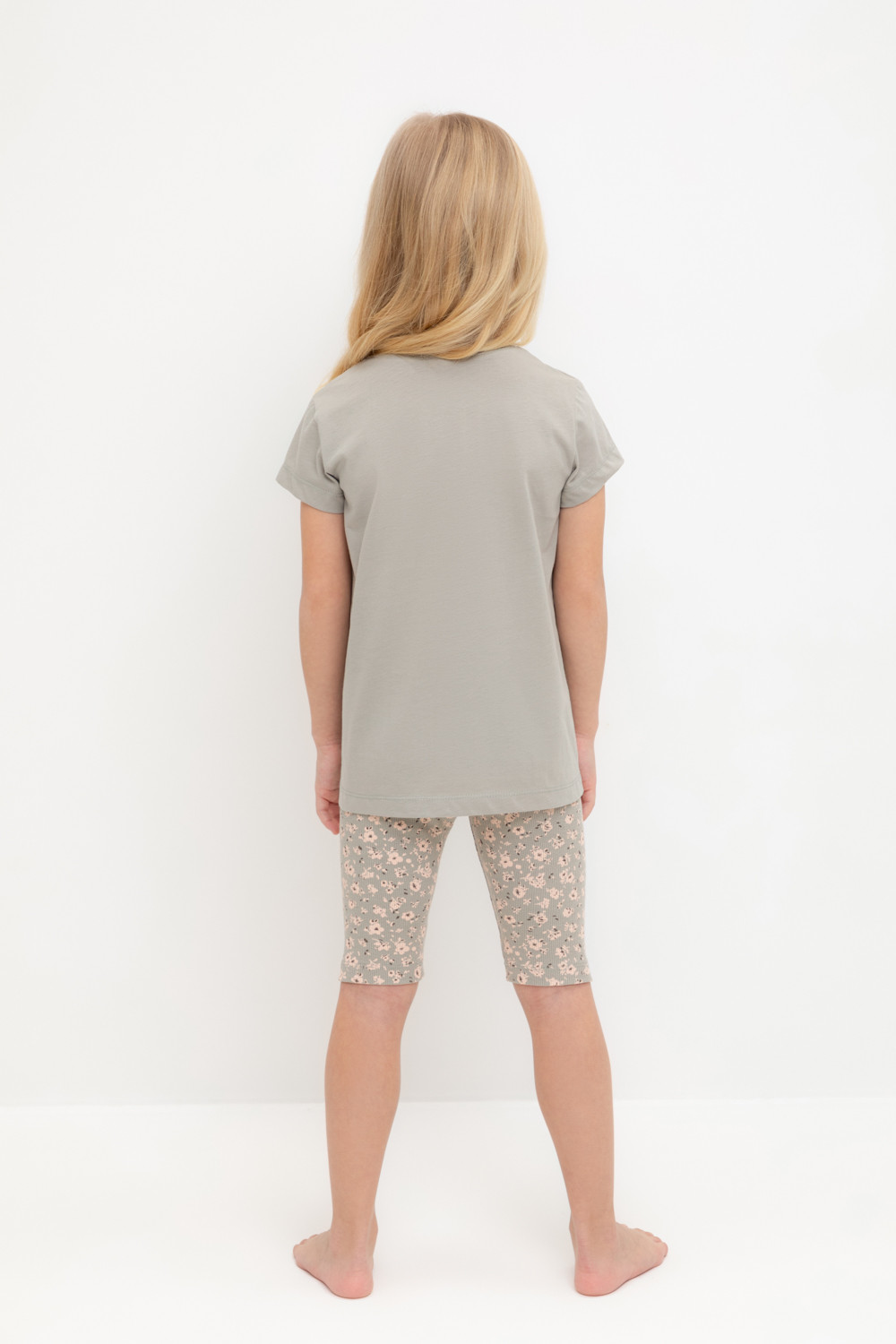 Трикотажная пижама из натурального хлопка. Удлиненная футболка с оригинальным принтом и спущенной линией плеч. У бридж в комплекте мягкий, эластичный пояс на резинке. Оригинальная набивка выполнена из стойких, гипоаллергенных текстильных красителей. Комплект сохраняет цвет и форму после многократных стирок. Все трикотажные полотна производятся в соответсвии с нормами Швейцарского сертификата ЭкоТекс.