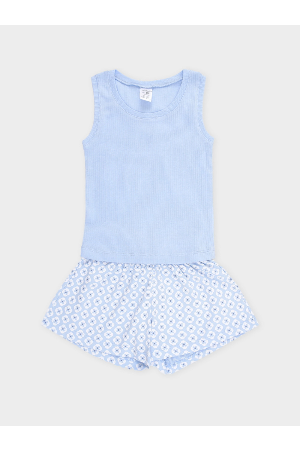 Трикотажная пижама для девочки с майкой и шортами. Майка изготовлена из эластичного трикотажа в рубчик. Шорты с эластичной резинкой в поясе выполнены из гладкого трикотажа супрем. Оригинальная набивка выполнена из стойких текстильных гипоаллергенных красителей. Изделие сохраняет цвет и форму после многократных стирок. Все трикотажные полотна производятся в соответсвии с нормами швейцарского сертификата ЭкоТекс.