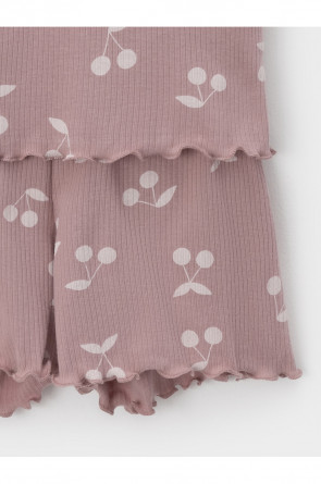 Трикотажная пижама в рубчик из натурального хлопка. Футболка с короткими втачными рукавами и шорты с эластичной резинкой в поясе. Оригинальная набивка выполнена из стойких текстильных гипоаллергенных красителей. Изделие сохраняет цвет и форму после многократных стирок. Все трикотажные полотна производятся в соответсвии с нормами швейцарского сертификата ЭкоТекс.