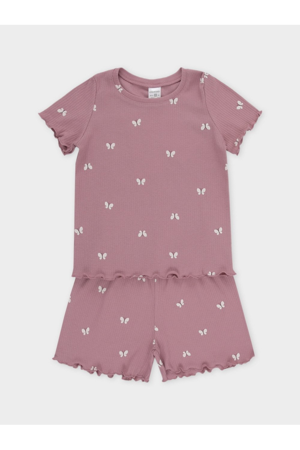 Трикотажная пижама в рубчик из натурального хлопка. Футболка с короткими втачными рукавами и шорты с эластичной резинкой в поясе. Оригинальная набивка выполнена из стойких текстильных гипоаллергенных красителей. Изделие сохраняет цвет и форму после многократных стирок. Все трикотажные полотна производятся в соответсвии с нормами швейцарского сертификата ЭкоТекс.