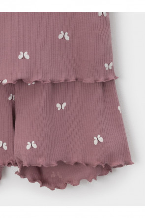 Трикотажная пижама в рубчик из натурального хлопка. Футболка с короткими втачными рукавами и шорты с эластичной резинкой в поясе. Оригинальная набивка выполнена из стойких текстильных гипоаллергенных красителей. Изделие сохраняет цвет и форму после многократных стирок. Все трикотажные полотна производятся в соответсвии с нормами швейцарского сертификата ЭкоТекс.