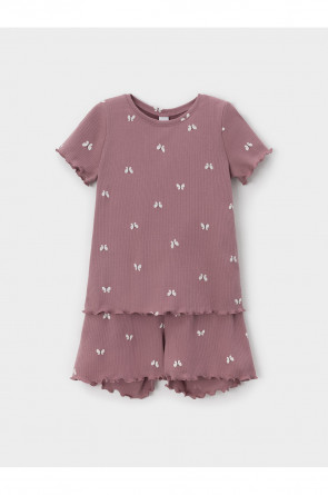Трикотажная пижама в рубчик из натурального хлопка. Футболка с короткими втачными рукавами и шорты с эластичной резинкой в поясе. Оригинальная набивка выполнена из стойких текстильных гипоаллергенных красителей. Изделие сохраняет цвет и форму после многократных стирок. Все трикотажные полотна производятся в соответсвии с нормами швейцарского сертификата ЭкоТекс.