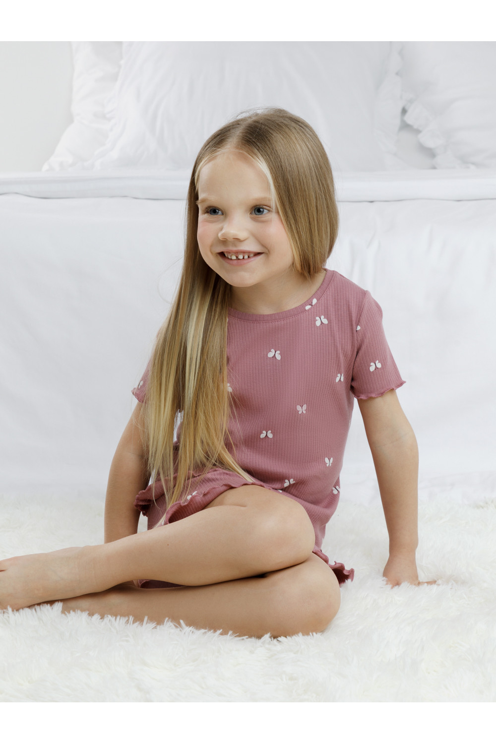 Трикотажная пижама в рубчик из натурального хлопка. Футболка с короткими втачными рукавами и шорты с эластичной резинкой в поясе. Оригинальная набивка выполнена из стойких текстильных гипоаллергенных красителей. Изделие сохраняет цвет и форму после многократных стирок. Все трикотажные полотна производятся в соответсвии с нормами швейцарского сертификата ЭкоТекс.