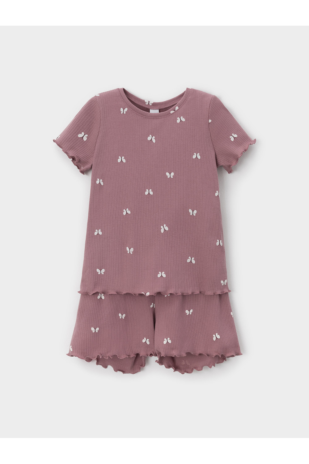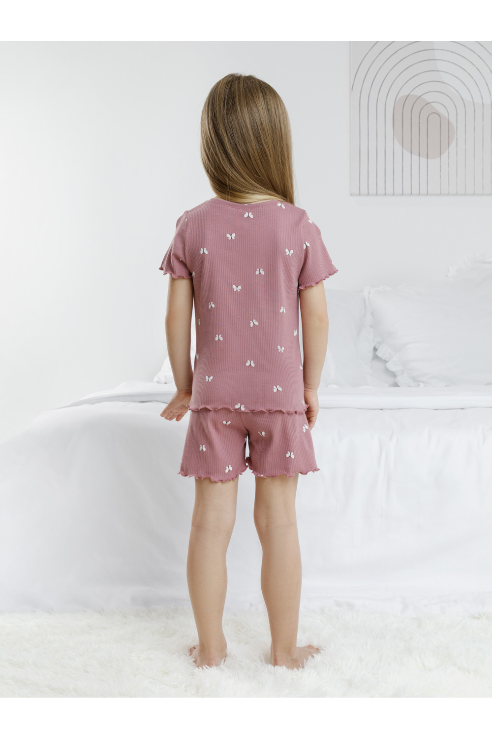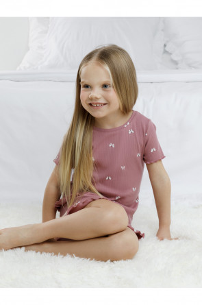 Трикотажная пижама в рубчик из натурального хлопка. Футболка с короткими втачными рукавами и шорты с эластичной резинкой в поясе. Оригинальная набивка выполнена из стойких текстильных гипоаллергенных красителей. Изделие сохраняет цвет и форму после многократных стирок. Все трикотажные полотна производятся в соответсвии с нормами швейцарского сертификата ЭкоТекс.