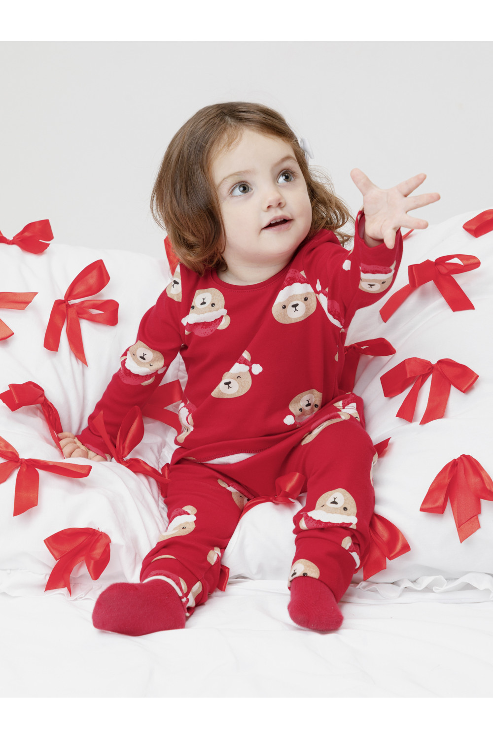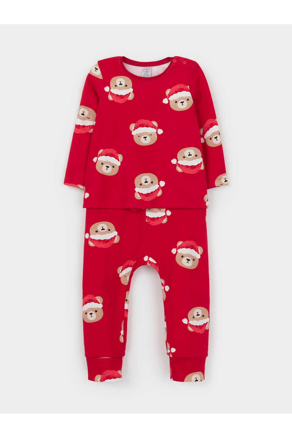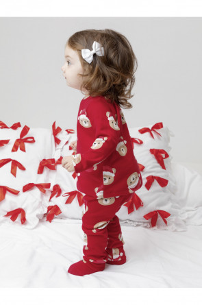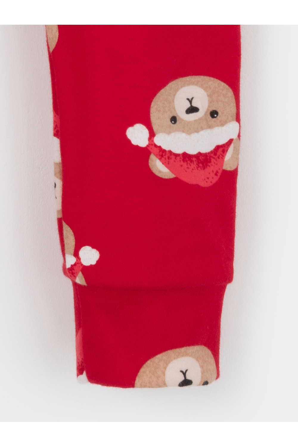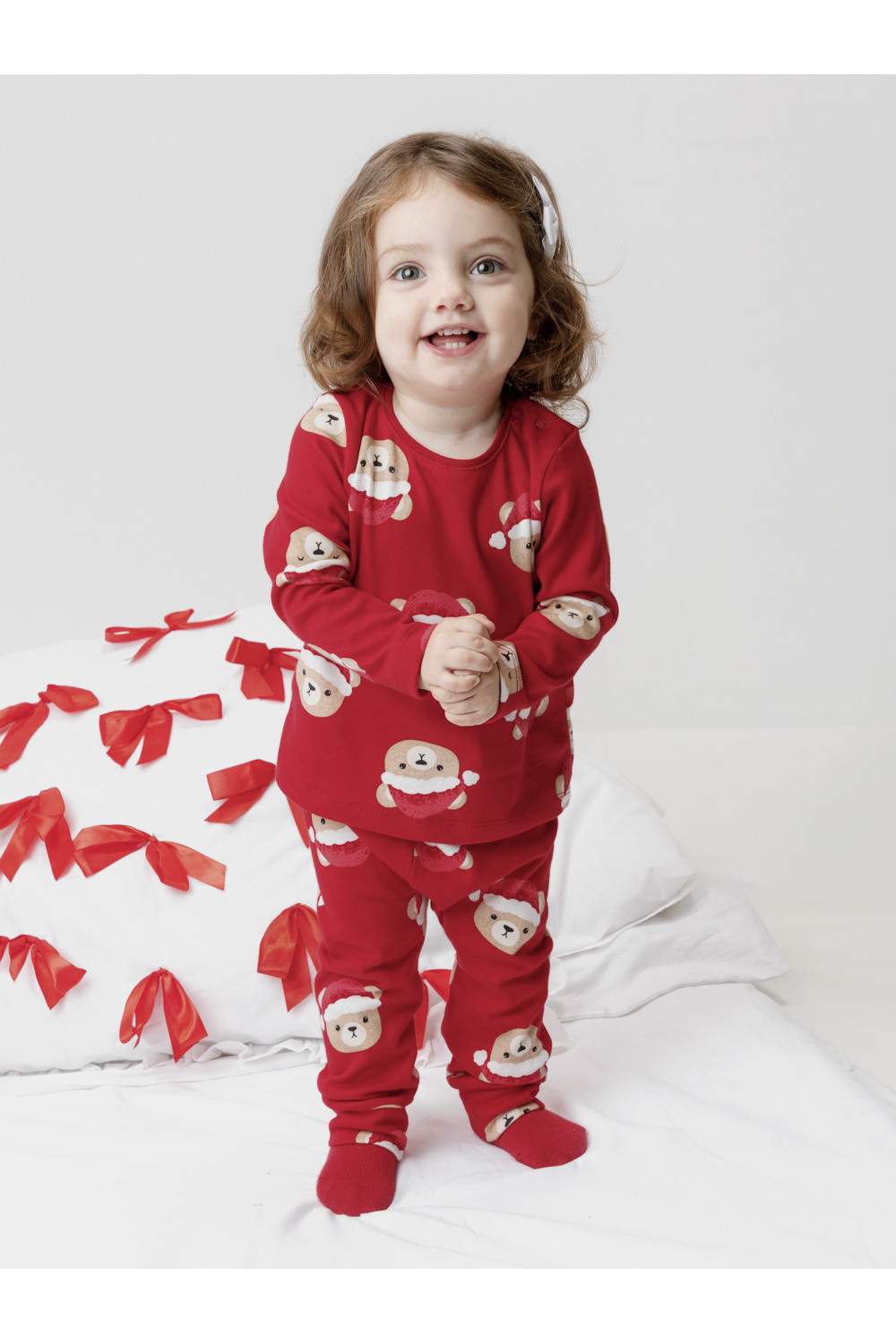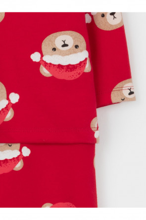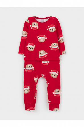 Трикотажная пижама из натурального хлопка. Джемпер с длинными втачными рукавами и брюки с эластичной резинкой в поясе. Отлично подойдёт для создания праздничных образов или в качестве подарка малышу на Новый год и Рождество. Джемпер застёгивается на кнопки. По низу брюк мягкие манжеты. Оригинальная набивка выполнена из стойких текстильных гипоаллергенных красителей. Изделие сохраняет цвет и форму после многократных стирок. Все трикотажные полотна производятся в соответствии с нормами швейцарского сертификата ЭкоТекс.