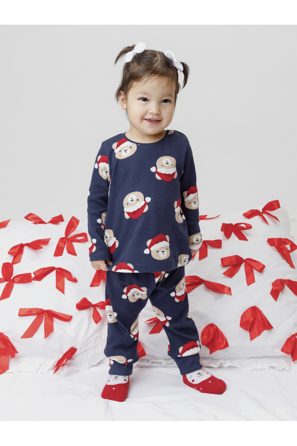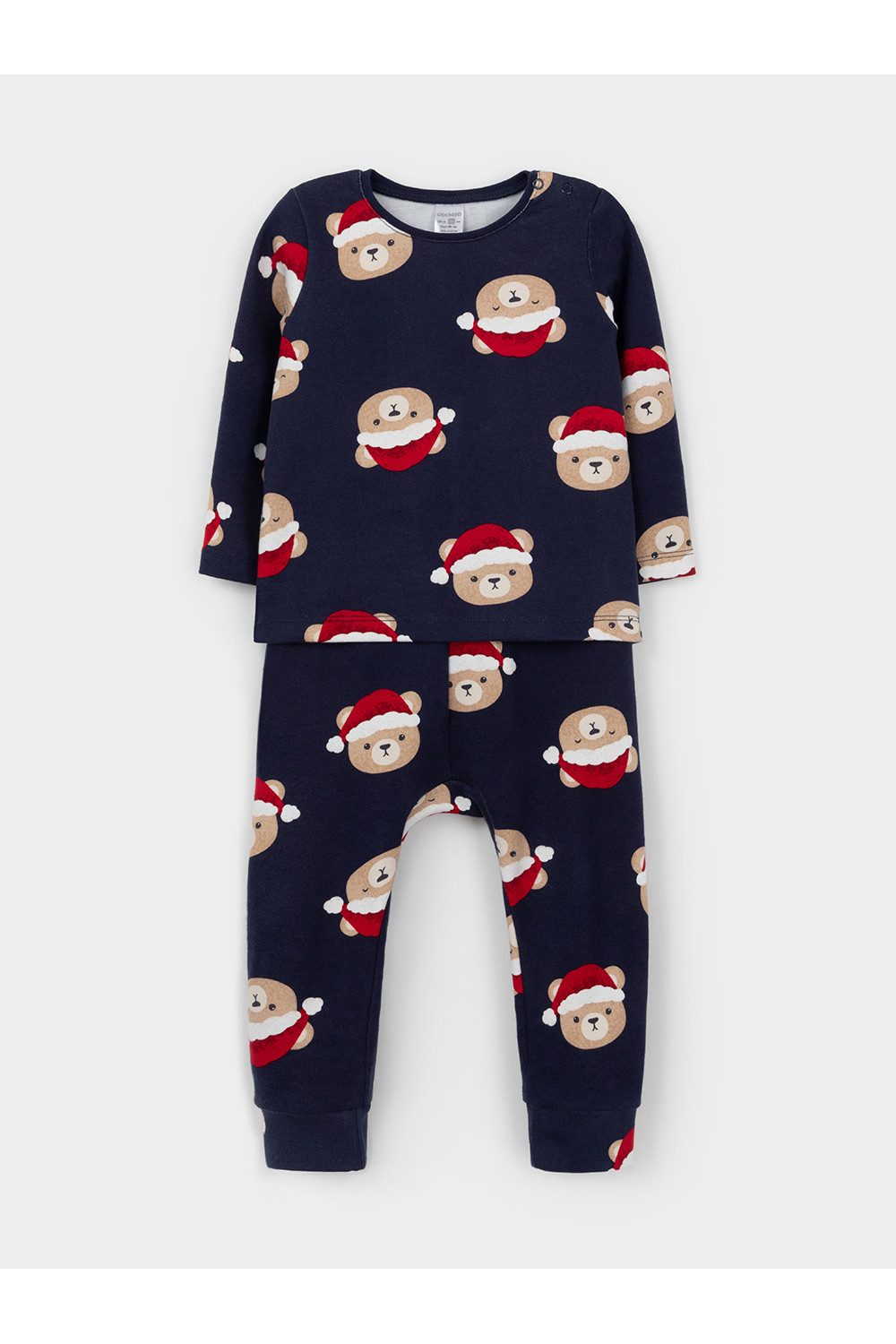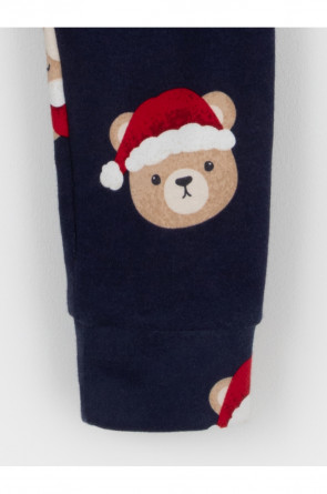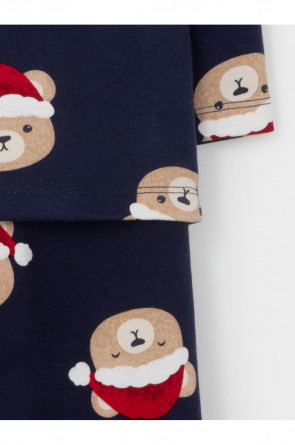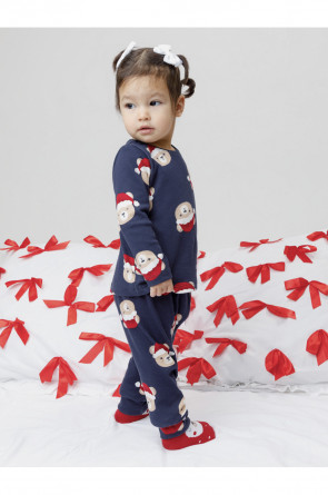 Трикотажная пижама из натурального хлопка. Джемпер с длинными втачными рукавами и брюки с эластичной резинкой в поясе. Отлично подойдёт для создания праздничных образов или в качестве подарка малышу на Новый год и Рождество. Джемпер застёгивается на кнопки. По низу брюк мягкие манжеты. Оригинальная набивка выполнена из стойких текстильных гипоаллергенных красителей. Изделие сохраняет цвет и форму после многократных стирок. Все трикотажные полотна производятся в соответствии с нормами швейцарского сертификата ЭкоТекс.