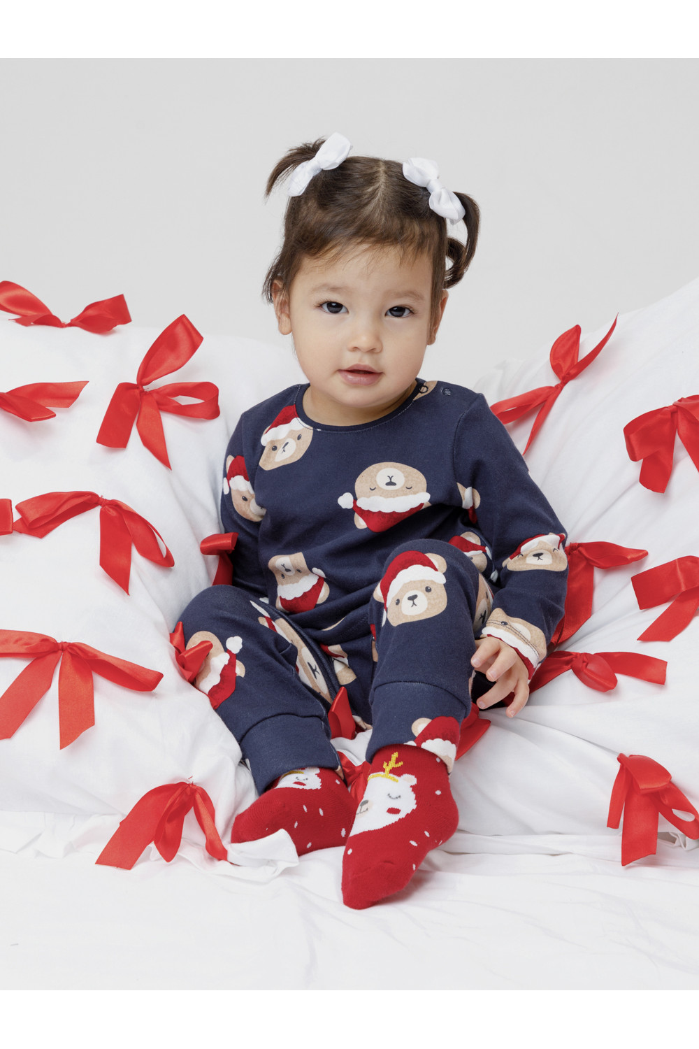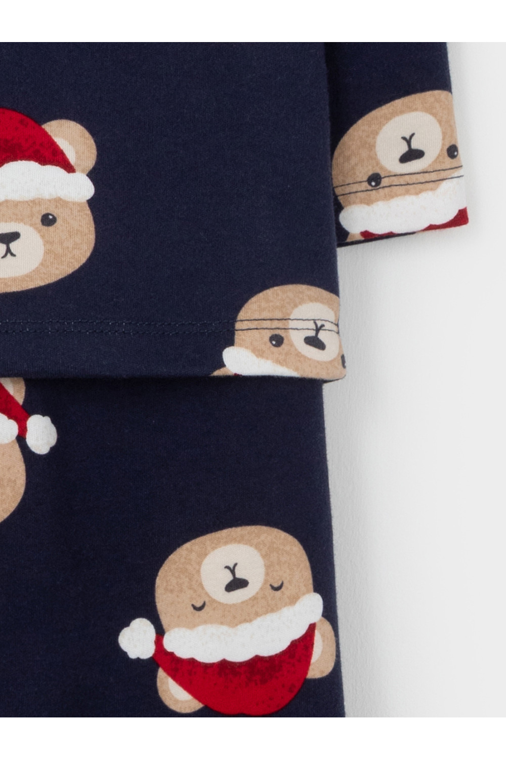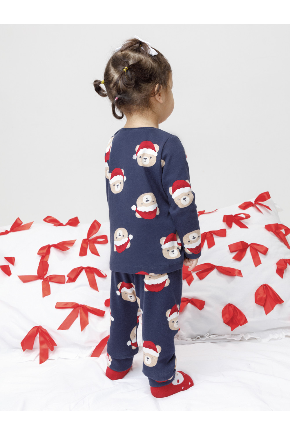 Трикотажная пижама из натурального хлопка. Джемпер с длинными втачными рукавами и брюки с эластичной резинкой в поясе. Отлично подойдёт для создания праздничных образов или в качестве подарка малышу на Новый год и Рождество. Джемпер застёгивается на кнопки. По низу брюк мягкие манжеты. Оригинальная набивка выполнена из стойких текстильных гипоаллергенных красителей. Изделие сохраняет цвет и форму после многократных стирок. Все трикотажные полотна производятся в соответствии с нормами швейцарского сертификата ЭкоТекс.