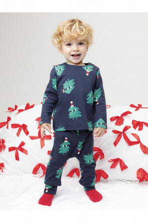 Трикотажная пижама из натурального хлопка. Джемпер с длинными втачными рукавами и брюки с эластичной резинкой в поясе. Отлично подойдёт для создания праздничных образов или в качестве подарка малышу на Новый год и Рождество. Джемпер застёгивается на кнопки. По низу брюк мягкие манжеты. Оригинальная набивка выполнена из стойких текстильных гипоаллергенных красителей. Изделие сохраняет цвет и форму после многократных стирок. Все трикотажные полотна производятся в соответствии с нормами швейцарского сертификата ЭкоТекс.