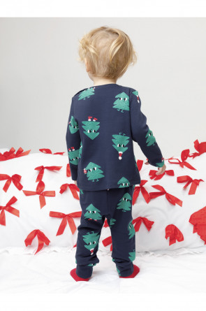 Трикотажная пижама из натурального хлопка. Джемпер с длинными втачными рукавами и брюки с эластичной резинкой в поясе. Отлично подойдёт для создания праздничных образов или в качестве подарка малышу на Новый год и Рождество. Джемпер застёгивается на кнопки. По низу брюк мягкие манжеты. Оригинальная набивка выполнена из стойких текстильных гипоаллергенных красителей. Изделие сохраняет цвет и форму после многократных стирок. Все трикотажные полотна производятся в соответствии с нормами швейцарского сертификата ЭкоТекс.