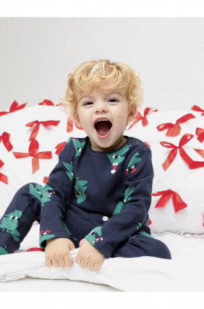 Трикотажная пижама из натурального хлопка. Джемпер с длинными втачными рукавами и брюки с эластичной резинкой в поясе. Отлично подойдёт для создания праздничных образов или в качестве подарка малышу на Новый год и Рождество. Джемпер застёгивается на кнопки. По низу брюк мягкие манжеты. Оригинальная набивка выполнена из стойких текстильных гипоаллергенных красителей. Изделие сохраняет цвет и форму после многократных стирок. Все трикотажные полотна производятся в соответствии с нормами швейцарского сертификата ЭкоТекс.
