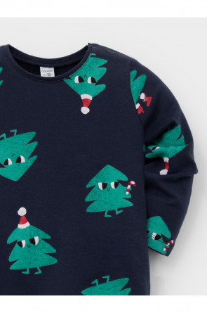 Трикотажная пижама из натурального хлопка. Джемпер с длинными втачными рукавами и брюки с эластичной резинкой в поясе. Отлично подойдёт для создания праздничных образов или в качестве подарка малышу на Новый год и Рождество. Джемпер застёгивается на кнопки. По низу брюк мягкие манжеты. Оригинальная набивка выполнена из стойких текстильных гипоаллергенных красителей. Изделие сохраняет цвет и форму после многократных стирок. Все трикотажные полотна производятся в соответствии с нормами швейцарского сертификата ЭкоТекс.