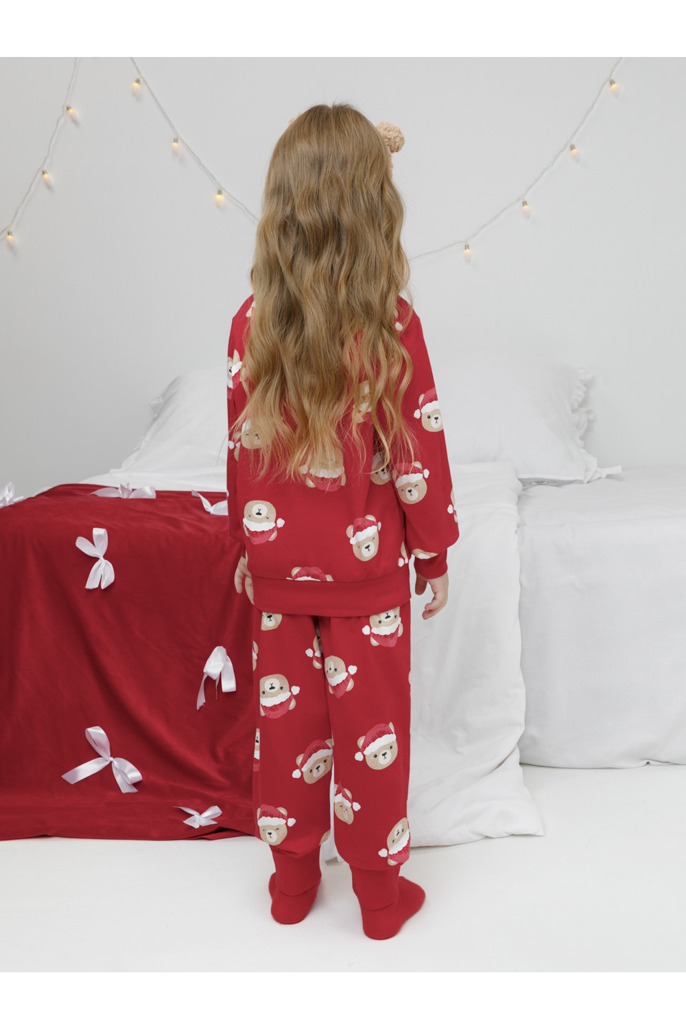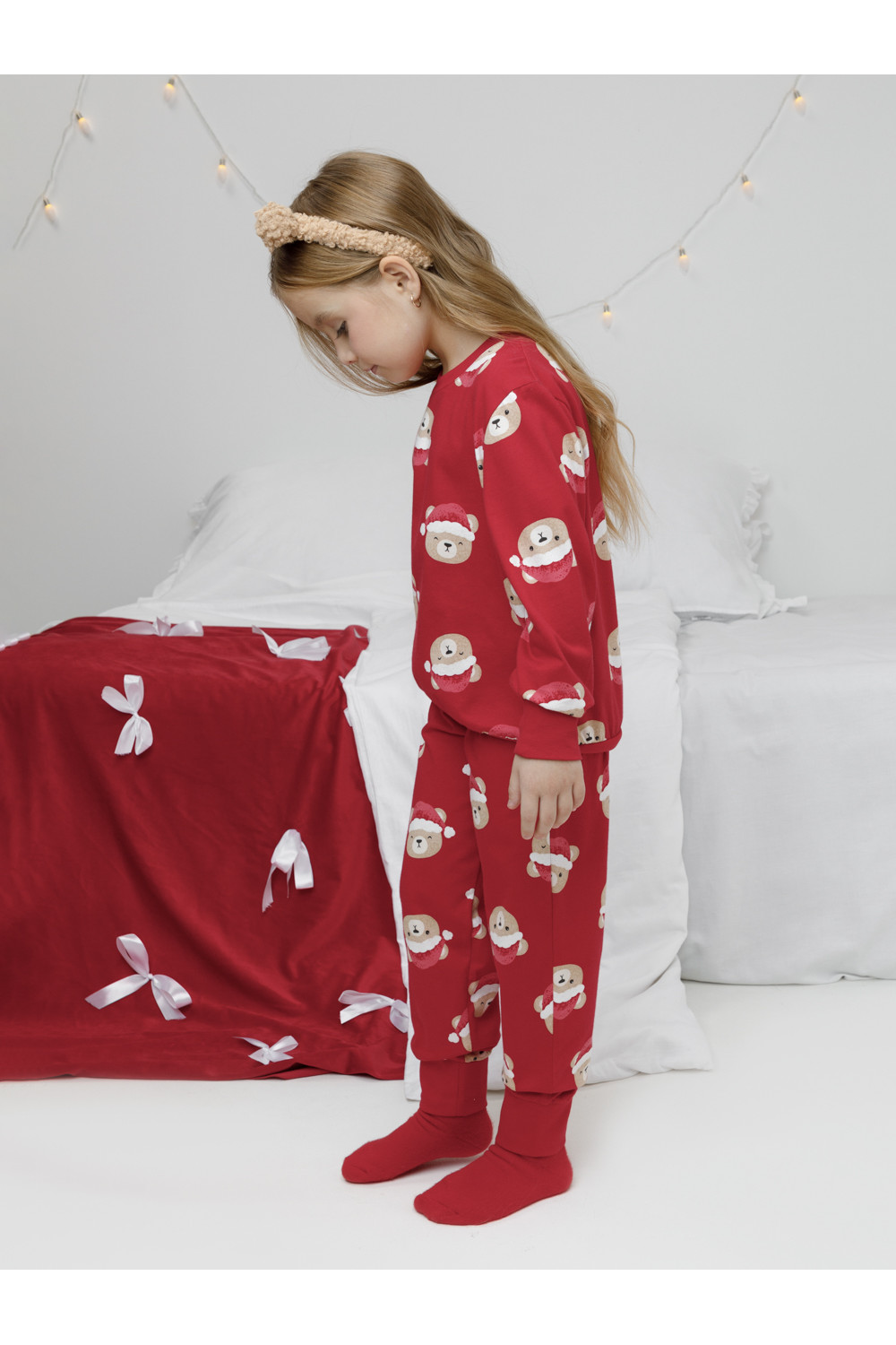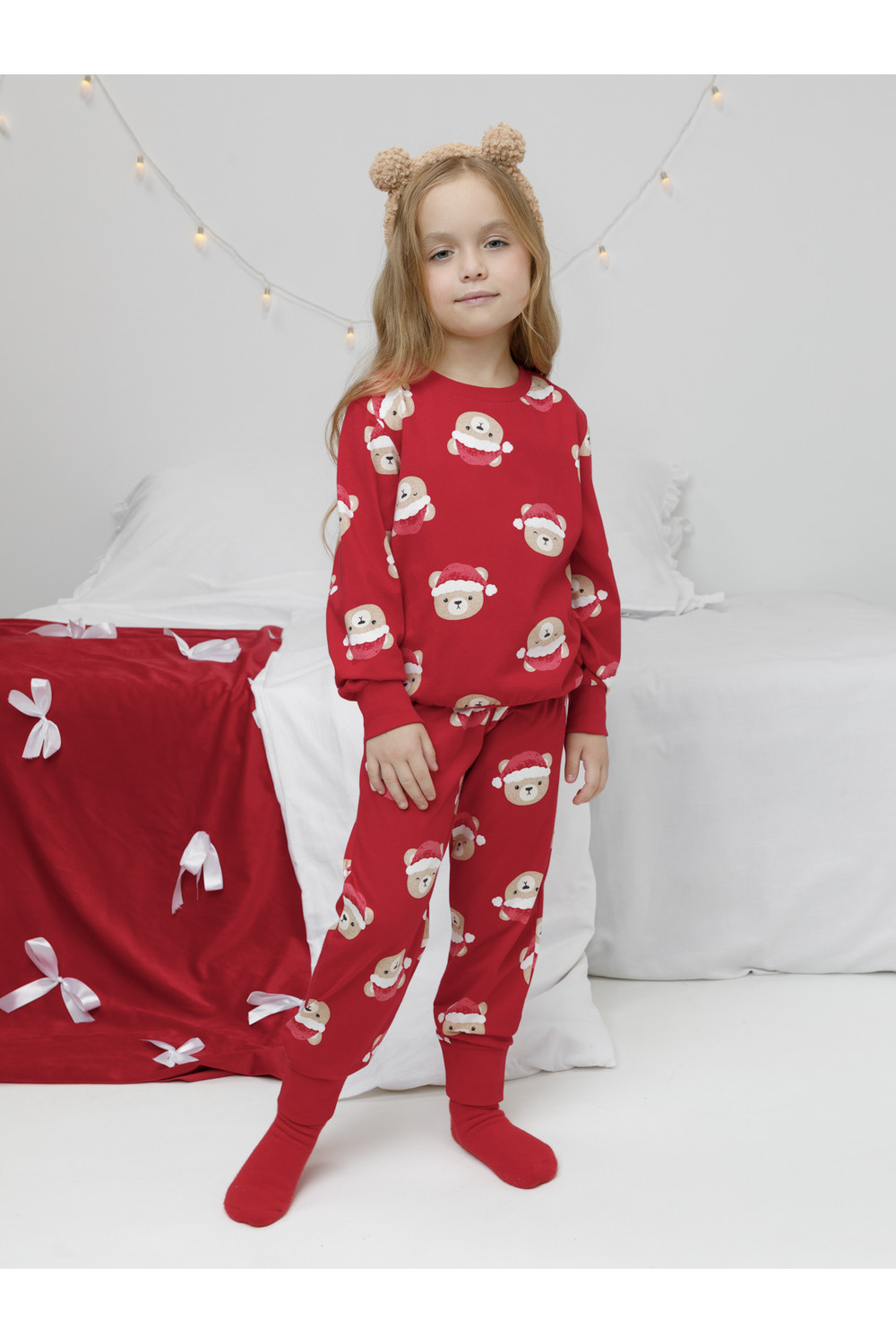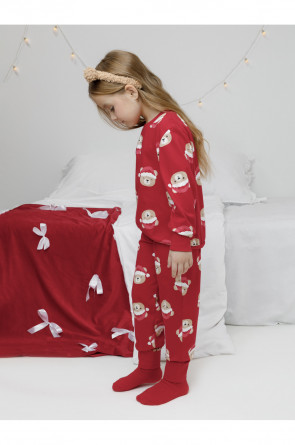 Новогодняя пижама из натурального хлопка. Джемпер с длинными втачными рукавами и брюки с эластичной резинкой в поясе. Мягкие манжеты на рукавах и по низу брюк. Пижама отлично подойдёт для создания уютных домашних образов или в качестве подарка на Новый год и Рождество. Оригинальная набивка выполнена из стойких текстильных гипоаллергенных красителей. Изделие сохраняет цвет и форму после многократных стирок. Все трикотажные полотна производятся в соответствии с нормами швейцарского сертификата ЭкоТекс.