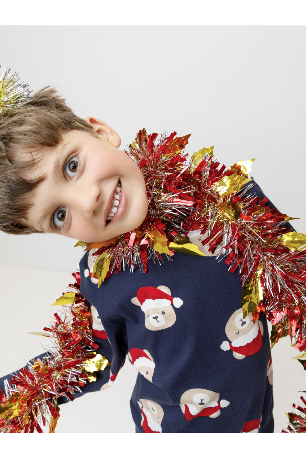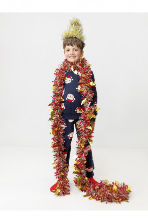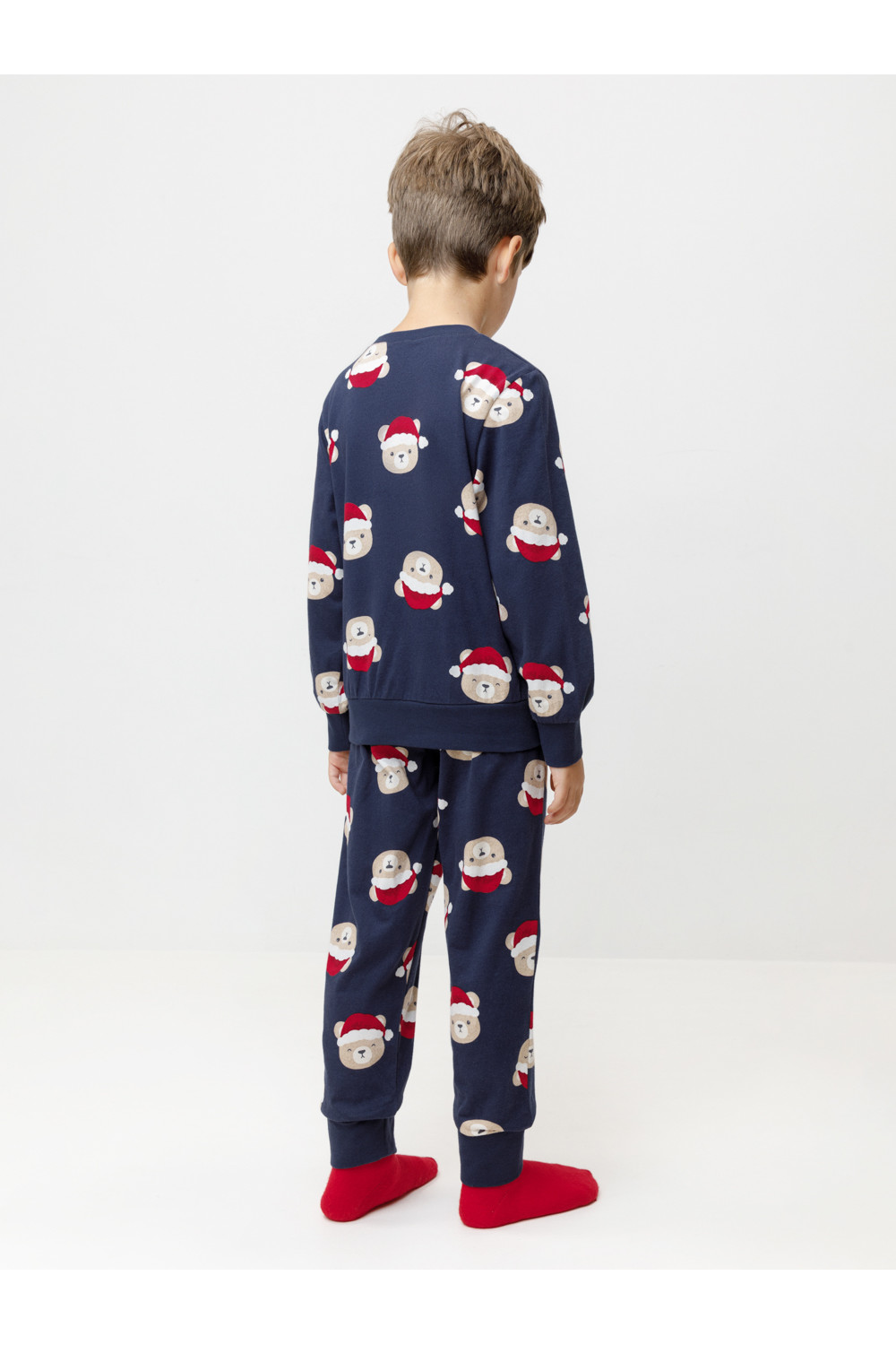 Новогодняя пижама из натурального хлопка. Джемпер с длинными втачными рукавами и брюки с эластичной резинкой в поясе. Мягкие манжеты на рукавах и по низу брюк. Пижама отлично подойдёт для создания уютных домашних образов или в качестве подарка на Новый год и Рождество. Оригинальная набивка выполнена из стойких текстильных гипоаллергенных красителей. Изделие сохраняет цвет и форму после многократных стирок. Все трикотажные полотна производятся в соответствии с нормами швейцарского сертификата ЭкоТекс.