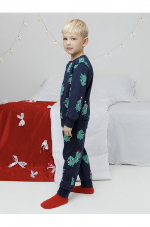 Новогодняя пижама из натурального хлопка. Джемпер с длинными втачными рукавами и брюки с эластичной резинкой в поясе. Мягкие манжеты на рукавах и по низу брюк. Пижама отлично подойдёт для создания уютных домашних образов или в качестве подарка на Новый год и Рождество. Оригинальная набивка выполнена из стойких текстильных гипоаллергенных красителей. Изделие сохраняет цвет и форму после многократных стирок. Все трикотажные полотна производятся в соответствии с нормами швейцарского сертификата ЭкоТекс.