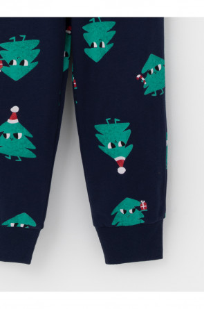 Новогодняя пижама из натурального хлопка. Джемпер с длинными втачными рукавами и брюки с эластичной резинкой в поясе. Мягкие манжеты на рукавах и по низу брюк. Пижама отлично подойдёт для создания уютных домашних образов или в качестве подарка на Новый год и Рождество. Оригинальная набивка выполнена из стойких текстильных гипоаллергенных красителей. Изделие сохраняет цвет и форму после многократных стирок. Все трикотажные полотна производятся в соответствии с нормами швейцарского сертификата ЭкоТекс.