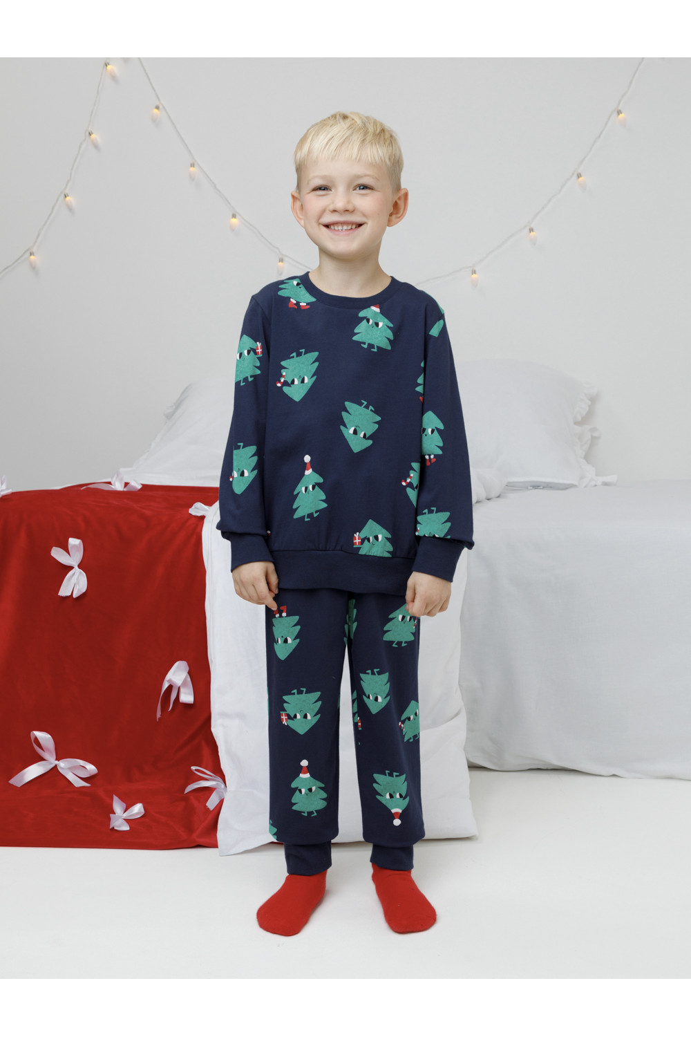 Новогодняя пижама из натурального хлопка. Джемпер с длинными втачными рукавами и брюки с эластичной резинкой в поясе. Мягкие манжеты на рукавах и по низу брюк. Пижама отлично подойдёт для создания уютных домашних образов или в качестве подарка на Новый год и Рождество. Оригинальная набивка выполнена из стойких текстильных гипоаллергенных красителей. Изделие сохраняет цвет и форму после многократных стирок. Все трикотажные полотна производятся в соответствии с нормами швейцарского сертификата ЭкоТекс.