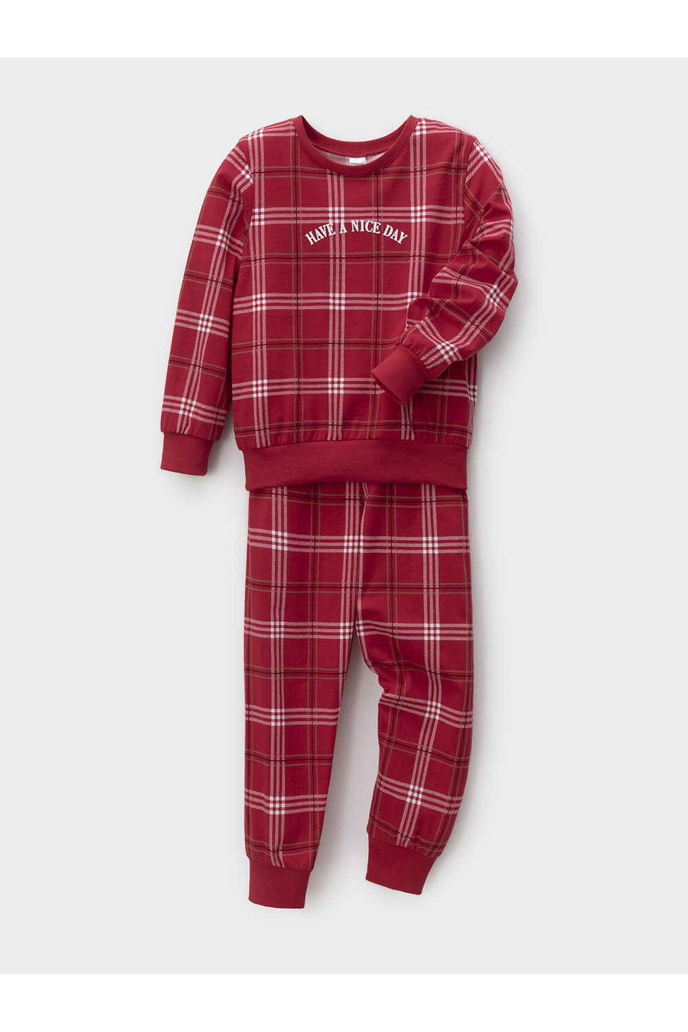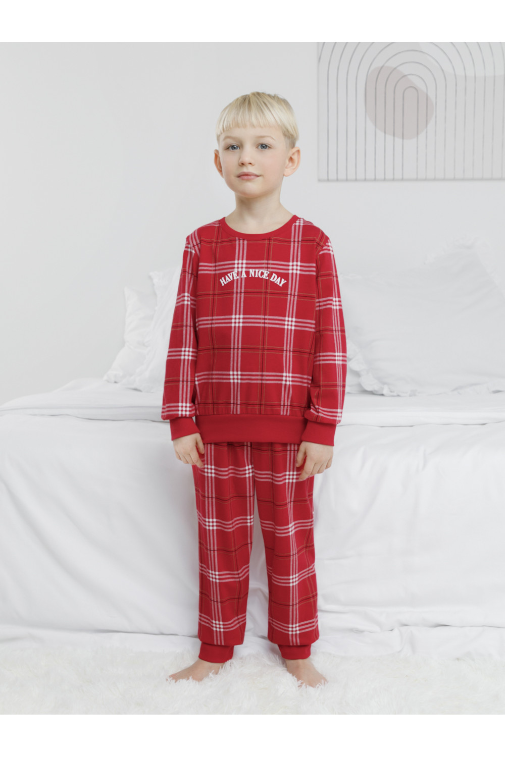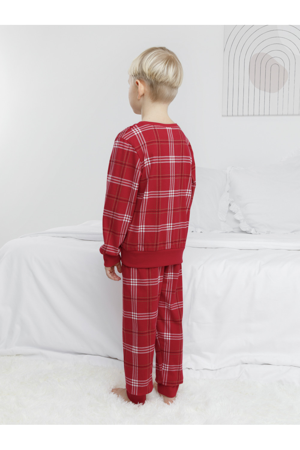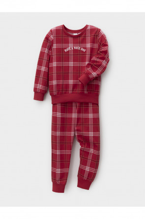 Трикотажная пижама из натурального хлопка. Джемпер с длинными втачными рукавами и брюки с эластичной резинкой в поясе. Мягкие манжеты на рукавах и по низу брюк. Пижама отлично подойдёт для создания уютных домашних образов или в качестве подарка на Новый год и Рождество. Оригинальная набивка и принт выполнены из стойких текстильных гипоаллергенных красителей. Изделие сохраняет цвет и форму после многократных стирок. Все трикотажные полотна производятся в соответствии с нормами швейцарского сертификата ЭкоТекс.