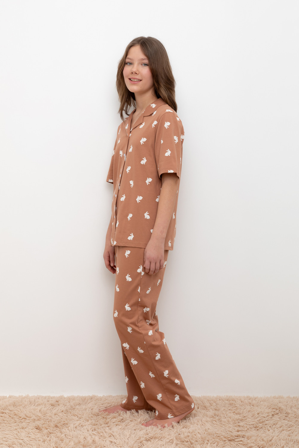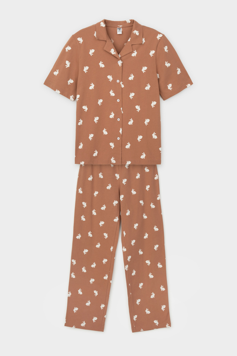 Трикотажный пижамный комплект из натурального хлопка. В комплекте рубашка с короткими рукавами и застежкой на пуговицы. Прямые брюки с удобным поясом на резинке. Оригинальная набивка выполнена из стойких, гипоаллергенных текстильных красителей. Все трикотажные полотна производятся в соответствии с нормами Швейцарского сертификата ЭкоТекс.