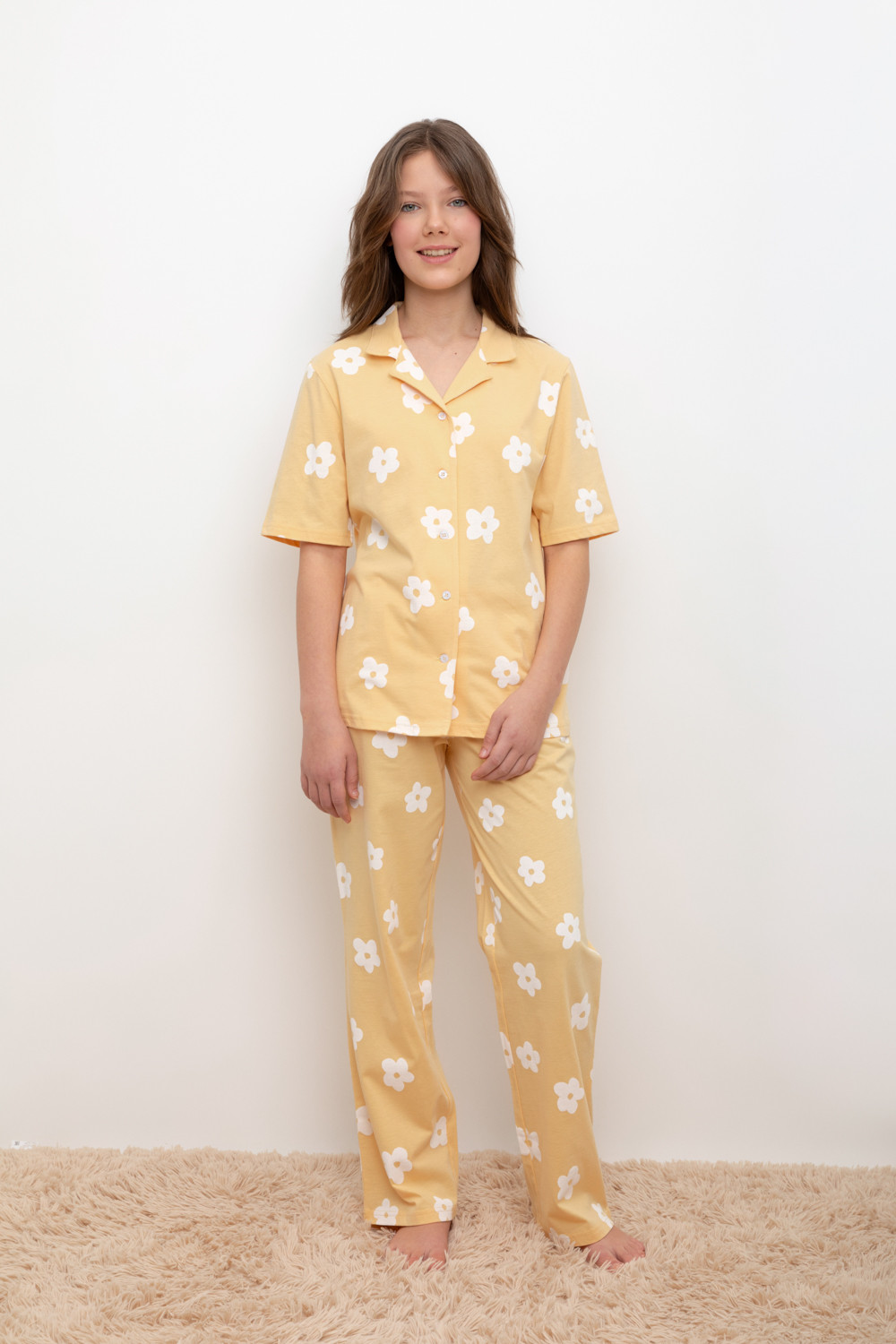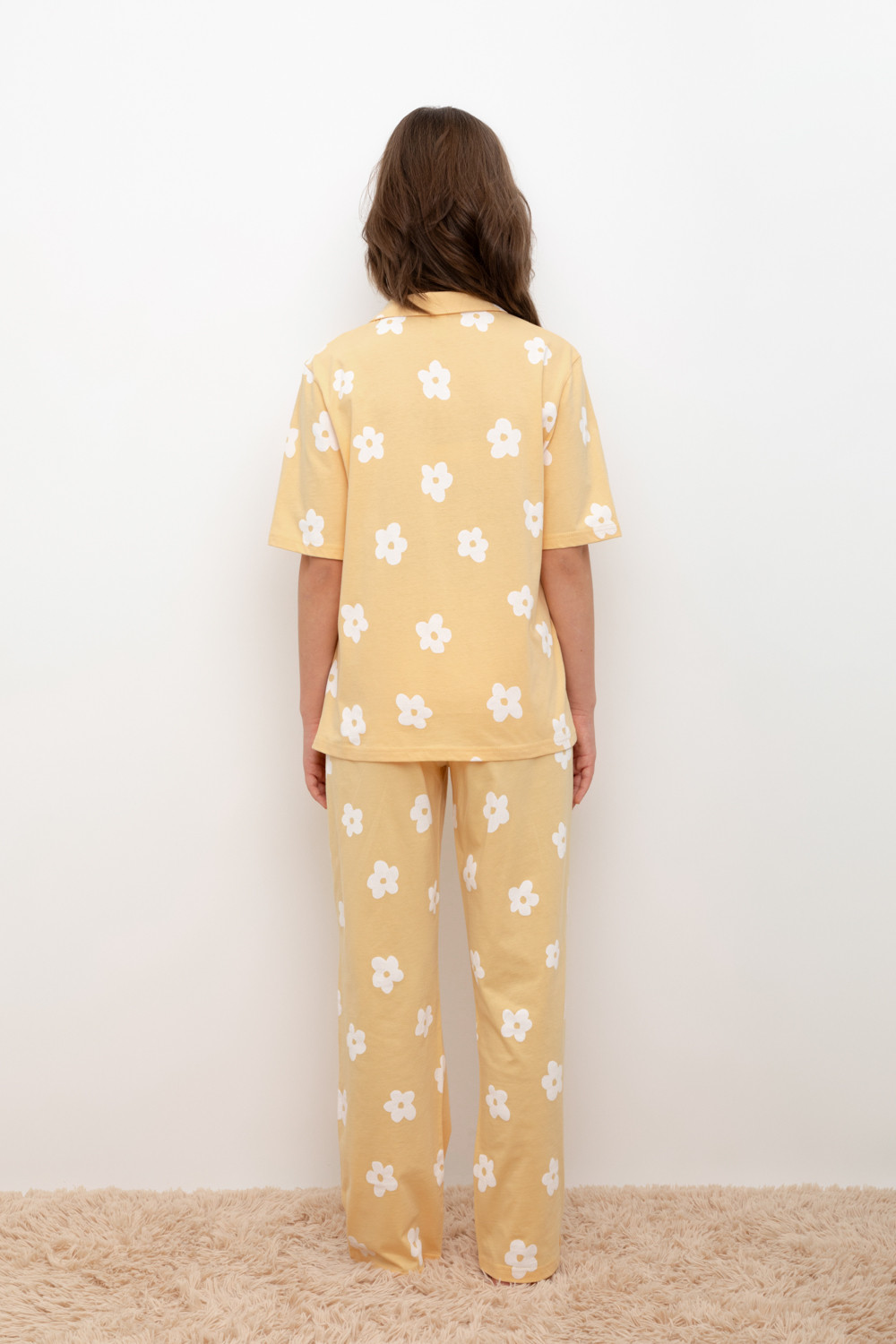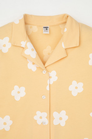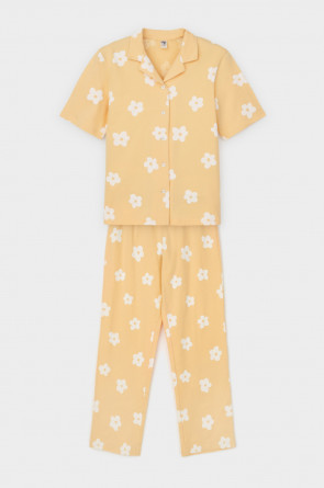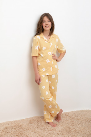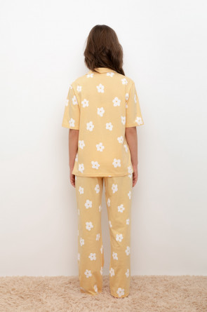 Трикотажный пижамный комплект из натурального хлопка. В комплекте рубашка с короткими рукавами и застежкой на пуговицы. Прямые брюки с удобным поясом на резинке. Оригинальная набивка выполнена из стойких, гипоаллергенных текстильных красителей. Все трикотажные полотна производятся в соответствии с нормами Швейцарского сертификата ЭкоТекс.