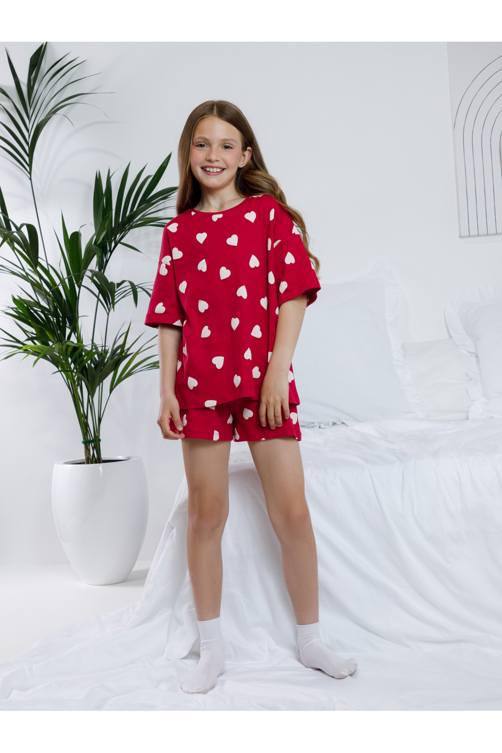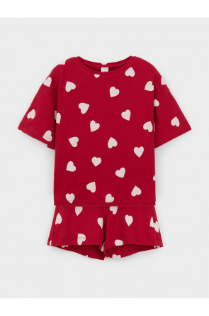 Трикотажная пижама из натурального хлопка для комфортного сна и отдыха. Футболка с короткими спущенными рукавами и шорты с мягкой эластичной резинкой в поясе. Оригинальная набивка выполнена из стойких текстильных гипоаллергенных красителей. Изделие сохраняет цвет и форму после многократных стирок. Все трикотажные полотна производятся в соответствии с нормами швейцарского сертификата ЭкоТекс.