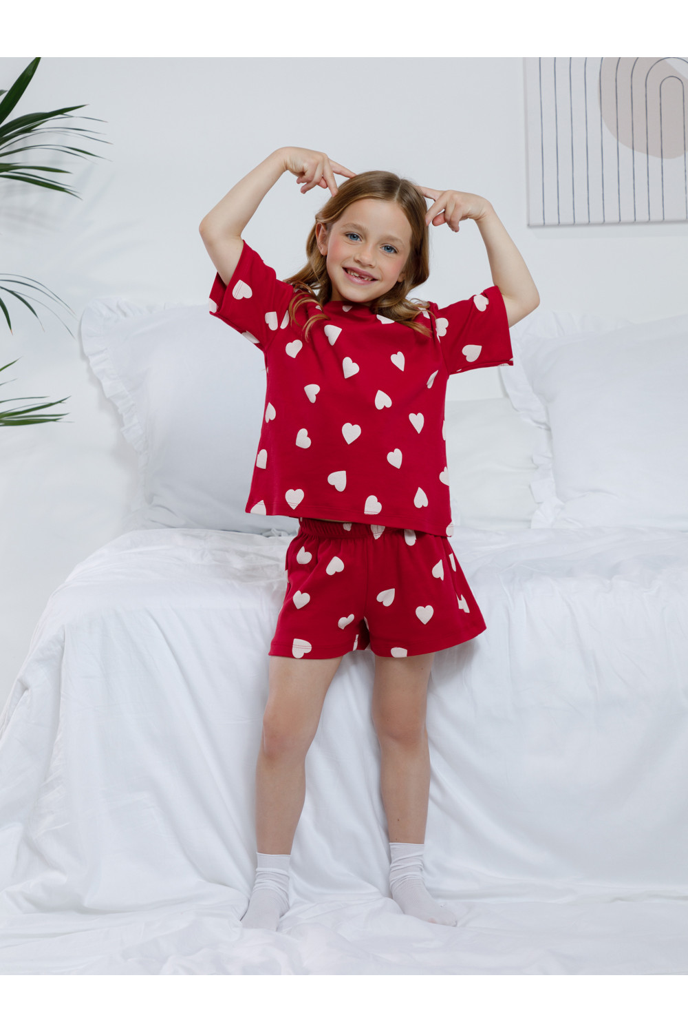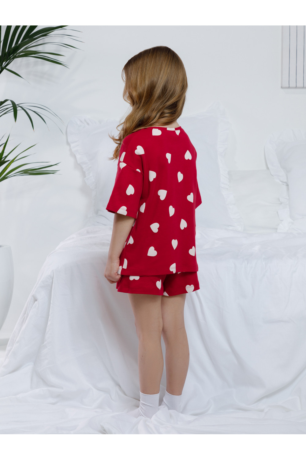 Трикотажная пижама из натурального хлопка для комфортного сна и отдыха. Футболка с короткими спущенными рукавами и шорты с мягкой эластичной резинкой в поясе. Оригинальная набивка выполнена из стойких текстильных гипоаллергенных красителей. Изделие сохраняет цвет и форму после многократных стирок. Все трикотажные полотна производятся в соответствии с нормами швейцарского сертификата ЭкоТекс.