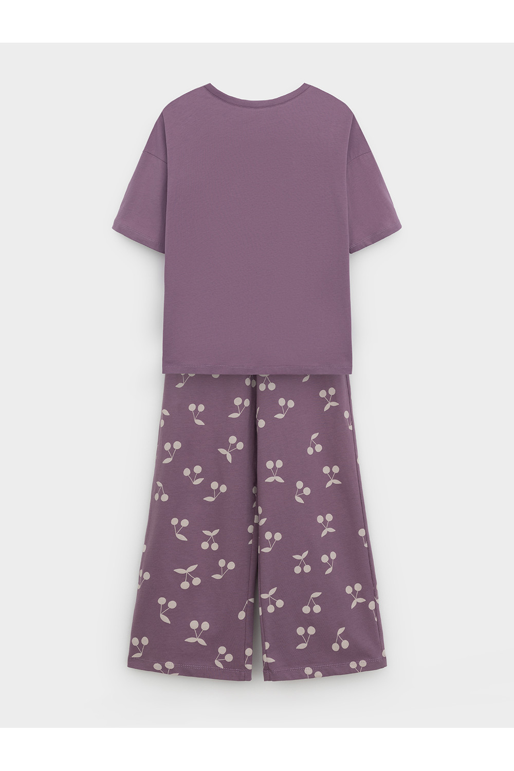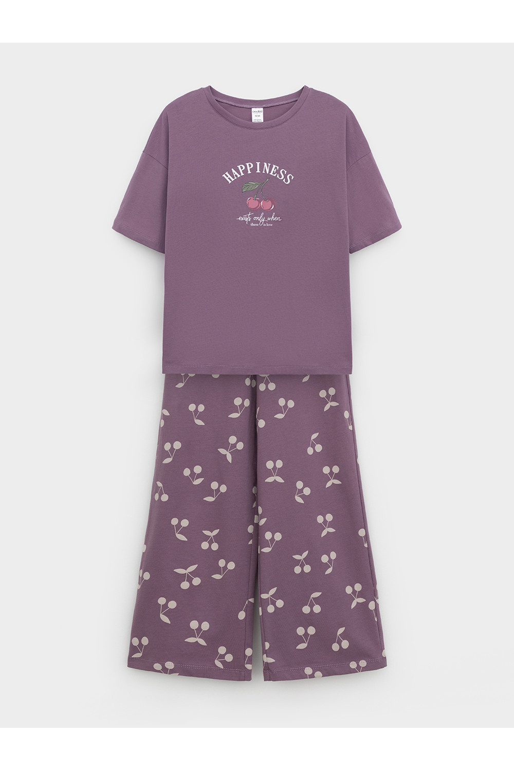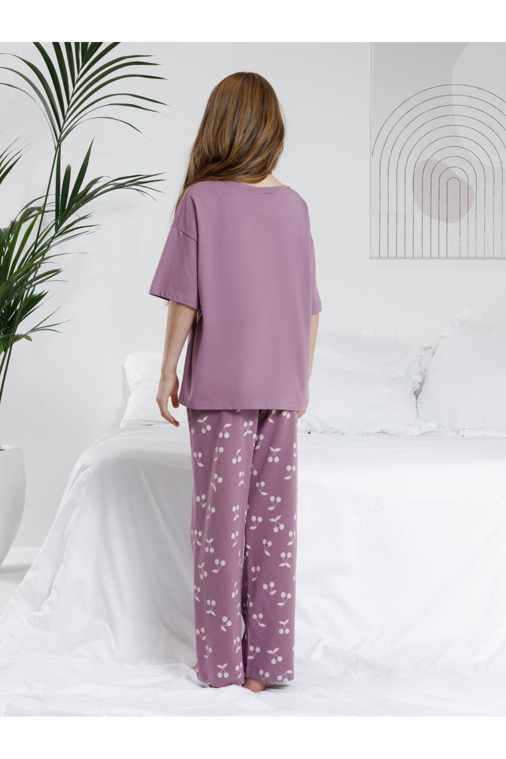 Трикотажная пижама из натурального хлопка для комфортного сна и отдыха. Футболка с короткими спущенными рукавами и прямые брюки с мягкой эластичной резинкой в поясе изготовлены из гладкого трикотажа супрем. Оригинальная набивка и принт выполнены из стойких текстильных гипоаллергенных красителей. Изделие сохраняет цвет и форму после многократных стирок. Все трикотажные полотна производятся в соответствии с нормами швейцарского сертификата ЭкоТекс.