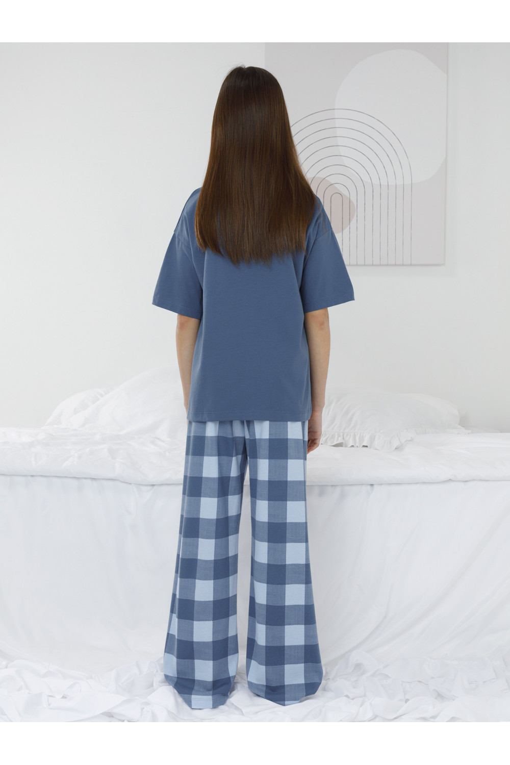 Трикотажная пижама из натурального хлопка для комфортного сна и отдыха. Футболка с короткими спущенными рукавами и прямые брюки с мягкой эластичной резинкой в поясе изготовлены из гладкого трикотажа супрем. Оригинальная набивка и принт выполнены из стойких текстильных гипоаллергенных красителей. Изделие сохраняет цвет и форму после многократных стирок. Все трикотажные полотна производятся в соответствии с нормами швейцарского сертификата ЭкоТекс.