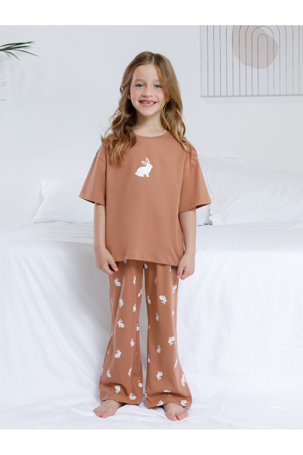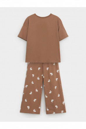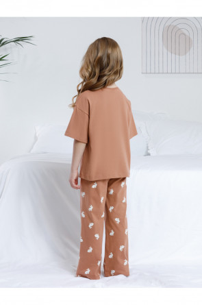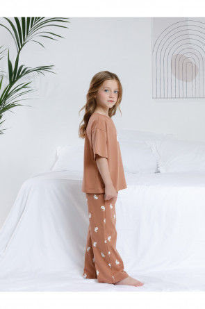 Трикотажная пижама из натурального хлопка для комфортного сна и отдыха. Футболка с короткими спущенными рукавами и прямые брюки с мягкой эластичной резинкой в поясе изготовлены из гладкого трикотажа супрем. Оригинальная набивка и принт выполнены из стойких текстильных гипоаллергенных красителей. Изделие сохраняет цвет и форму после многократных стирок. Все трикотажные полотна производятся в соответствии с нормами швейцарского сертификата ЭкоТекс.