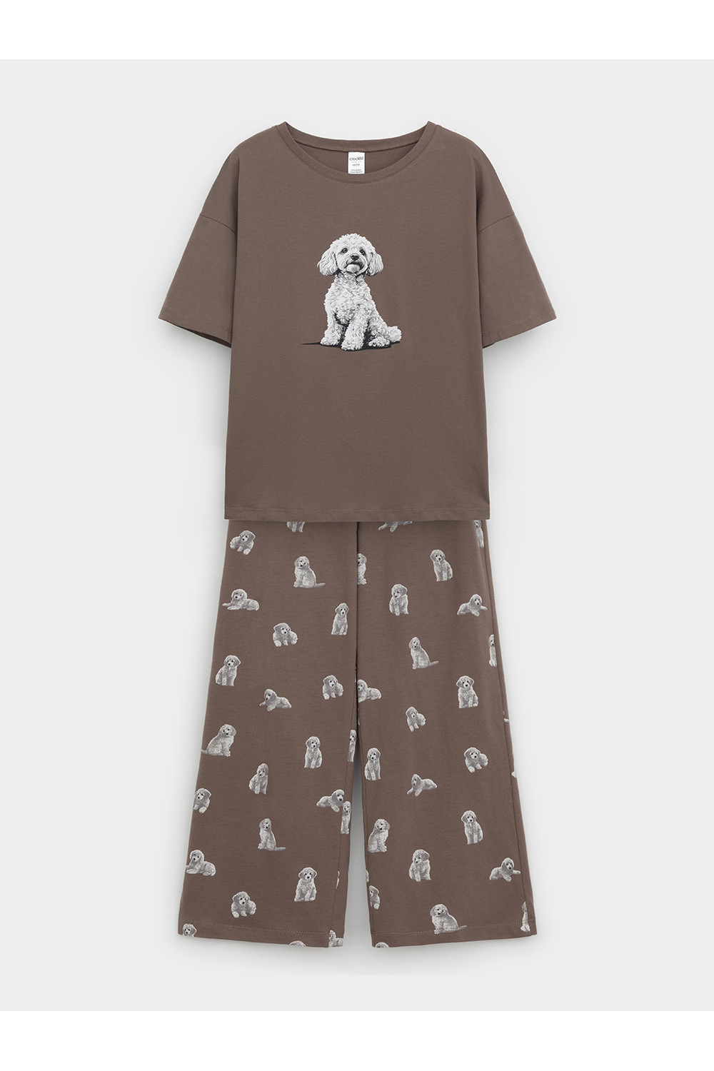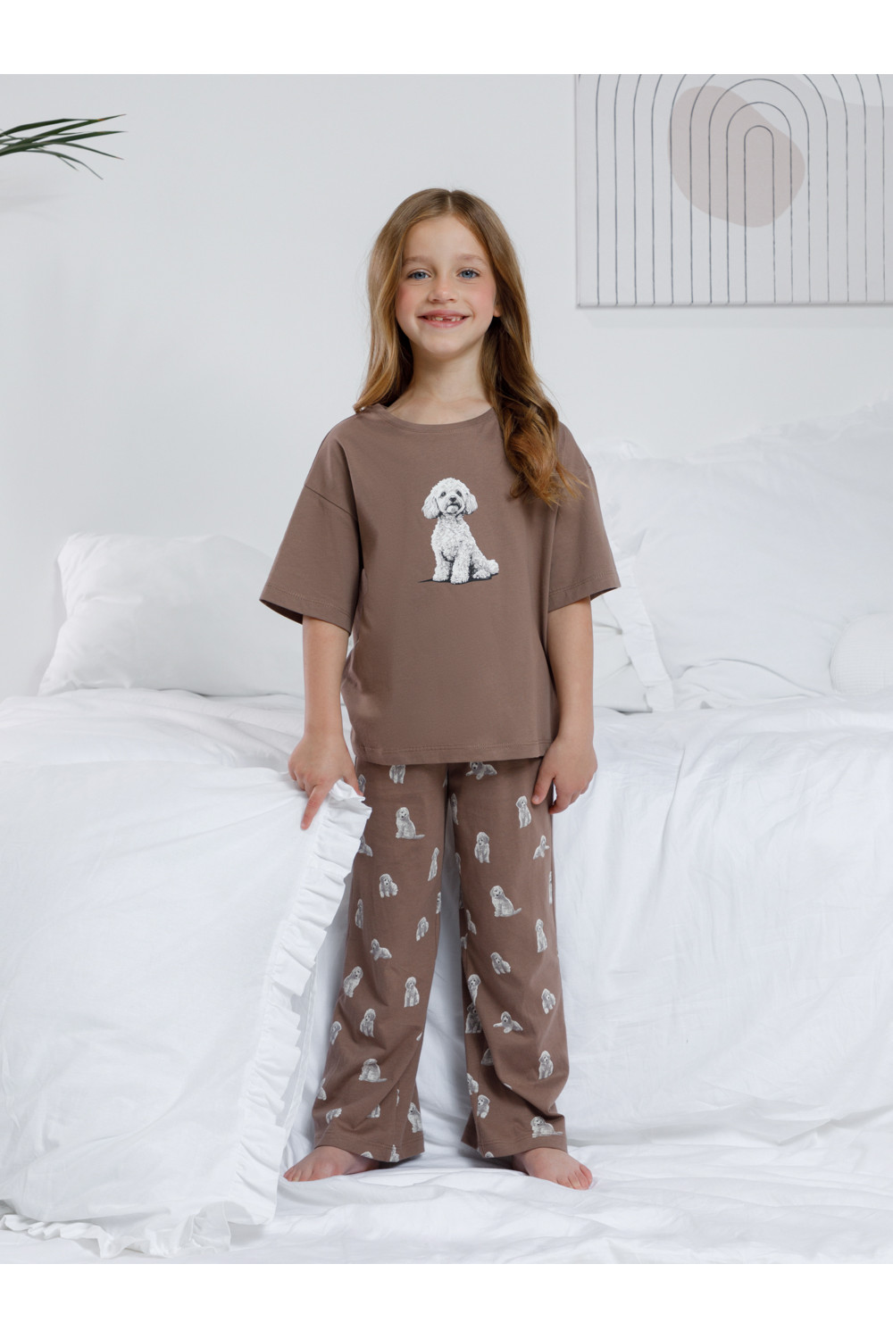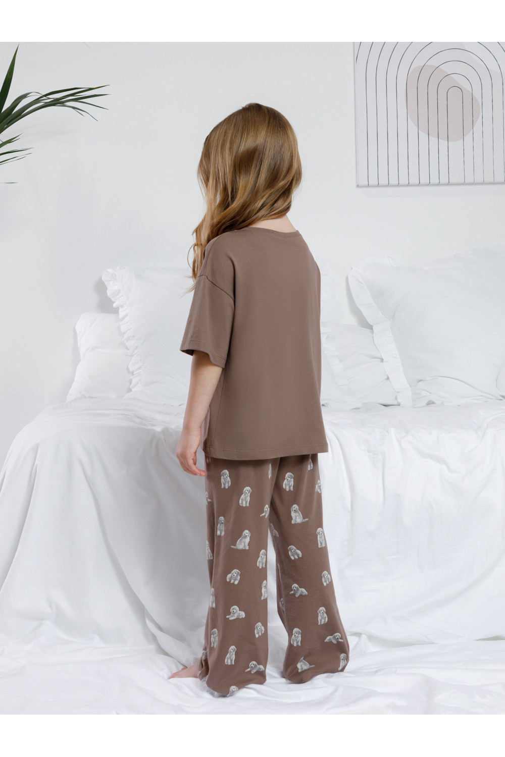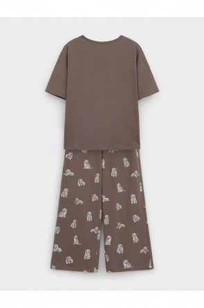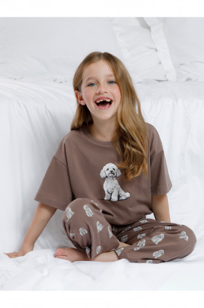 Трикотажная пижама из натурального хлопка для комфортного сна и отдыха. Футболка с короткими спущенными рукавами и прямые брюки с мягкой эластичной резинкой в поясе изготовлены из гладкого трикотажа супрем. Оригинальная набивка и принт выполнены из стойких текстильных гипоаллергенных красителей. Изделие сохраняет цвет и форму после многократных стирок. Все трикотажные полотна производятся в соответствии с нормами швейцарского сертификата ЭкоТекс.