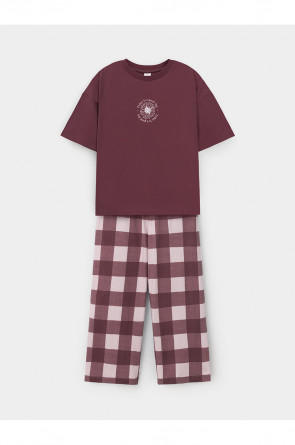 Трикотажная пижама из натурального хлопка для комфортного сна и отдыха. Футболка с короткими спущенными рукавами и прямые брюки с мягкой эластичной резинкой в поясе изготовлены из гладкого трикотажа супрем. Оригинальная набивка и принт выполнены из стойких текстильных гипоаллергенных красителей. Изделие сохраняет цвет и форму после многократных стирок. Все трикотажные полотна производятся в соответствии с нормами швейцарского сертификата ЭкоТекс.