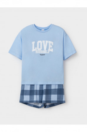 Трикотажная пижама из натурального хлопка для комфортного сна и отдыха. Футболка с короткими спущенными рукавами и шорты с мягкой эластичной резинкой в поясе. Оригинальная набивка и принт выполнены из стойких текстильных гипоаллергенных красителей. Изделие сохраняет цвет и форму после многократных стирок. Все трикотажные полотна производятся в соответствии с нормами швейцарского сертификата ЭкоТекс.