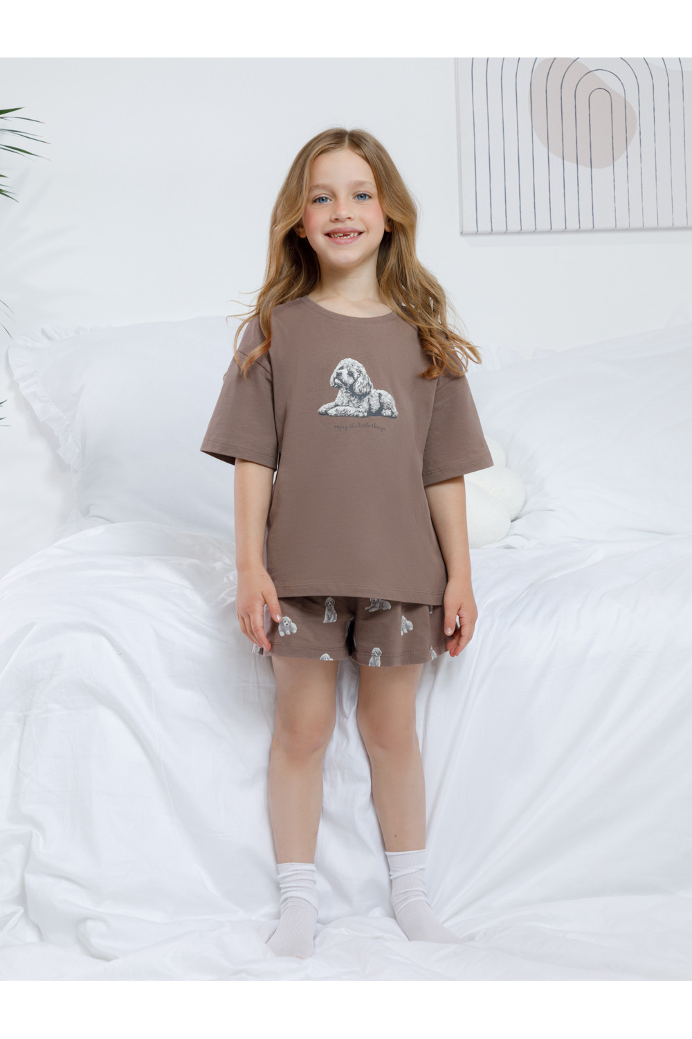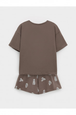 Трикотажная пижама из натурального хлопка для комфортного сна и отдыха. Футболка с короткими спущенными рукавами и шорты с мягкой эластичной резинкой в поясе. Оригинальная набивка и принт выполнены из стойких текстильных гипоаллергенных красителей. Изделие сохраняет цвет и форму после многократных стирок. Все трикотажные полотна производятся в соответствии с нормами швейцарского сертификата ЭкоТекс.