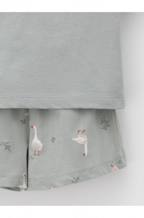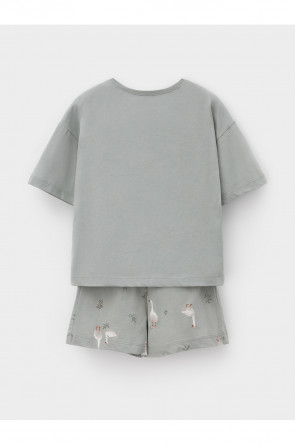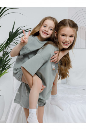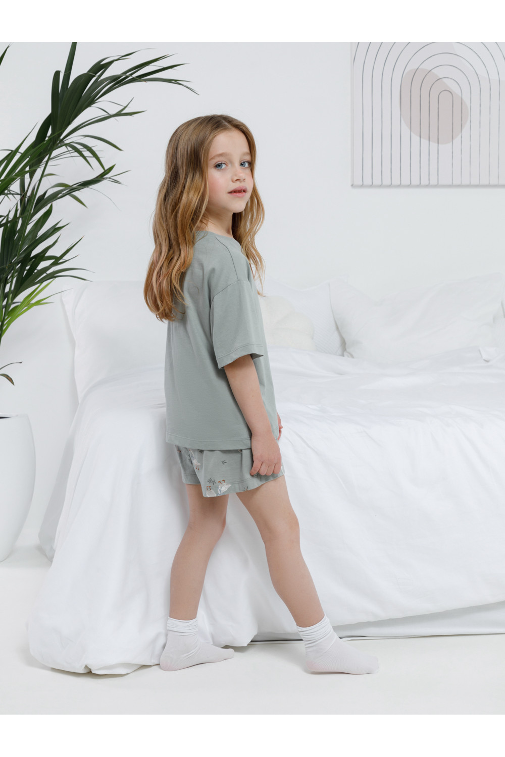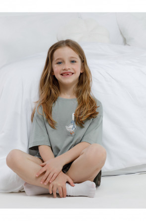 Трикотажная пижама из натурального хлопка для комфортного сна и отдыха. Футболка с короткими спущенными рукавами и шорты с мягкой эластичной резинкой в поясе. Оригинальная набивка и принт выполнены из стойких текстильных гипоаллергенных красителей. Изделие сохраняет цвет и форму после многократных стирок. Все трикотажные полотна производятся в соответствии с нормами швейцарского сертификата ЭкоТекс.
