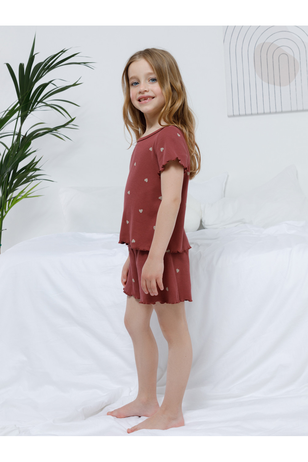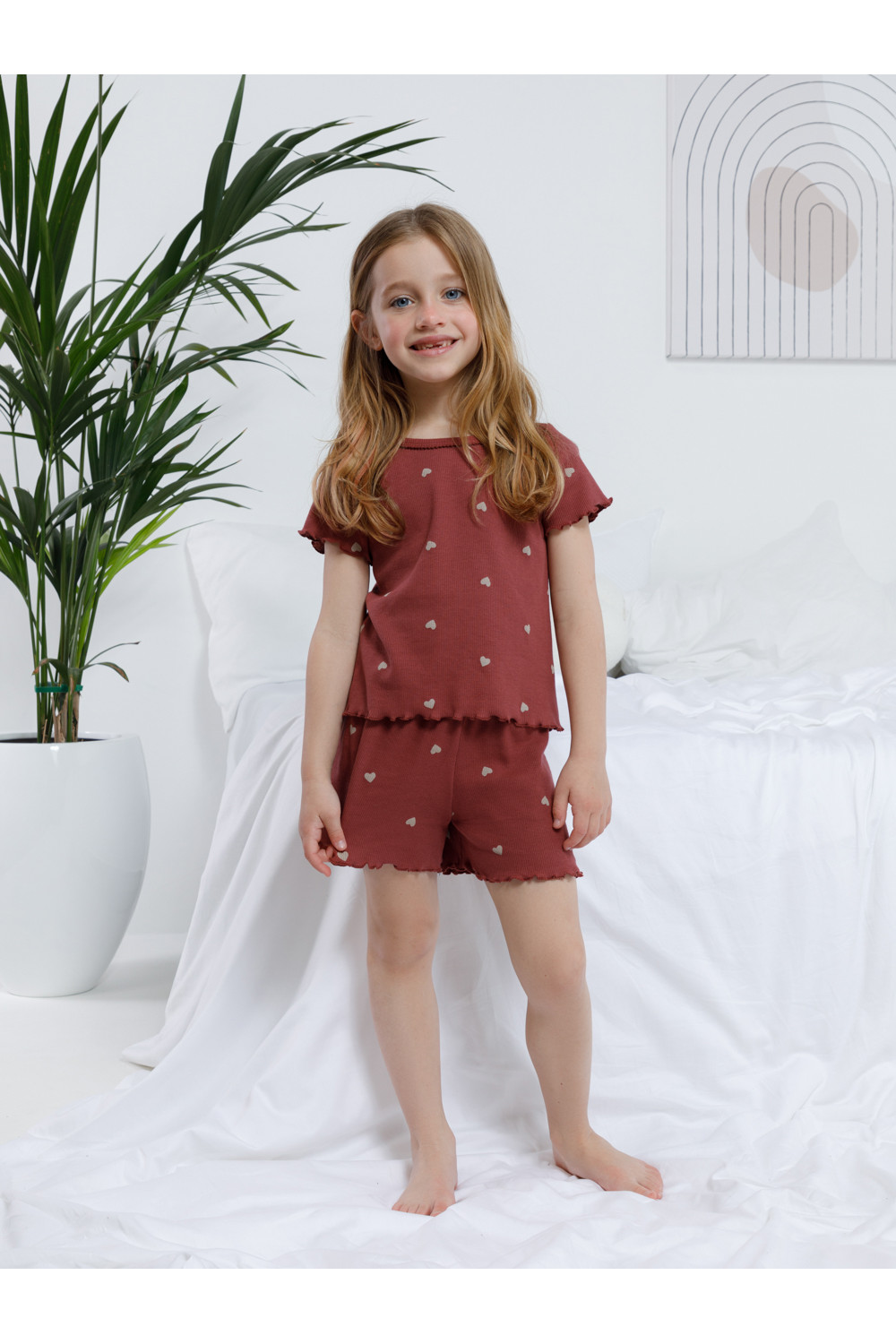 Детская пижама из хлопкового трикотажа в рубчик для комфортного сна и отдыха. Футболка с короткими втачными рукавами и шорты с мягкой эластичной резинкой в поясе. Оригинальная набивка выполнена из стойких текстильных гипоаллергенных красителей. Изделие сохраняет цвет и форму после многократных стирок. Все трикотажные полотна производятся в соответствии с нормами швейцарского сертификата ЭкоТекс.