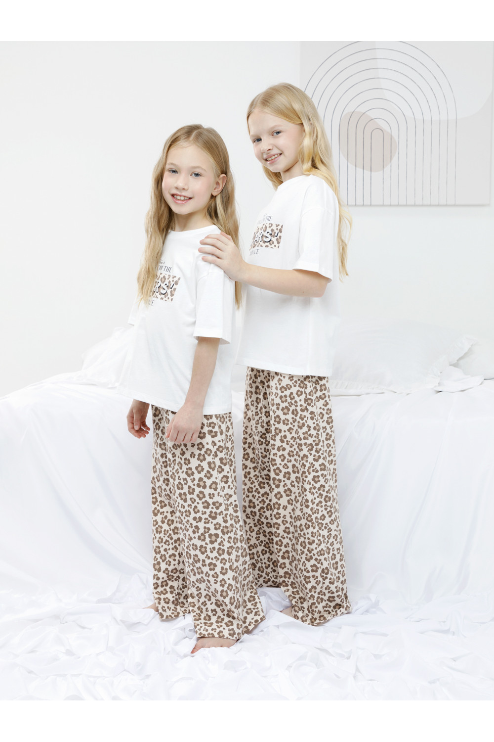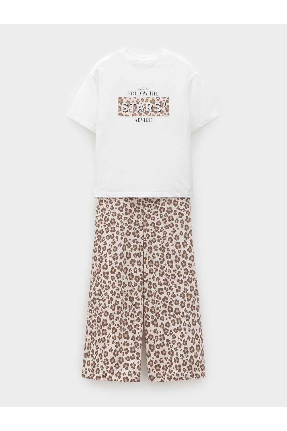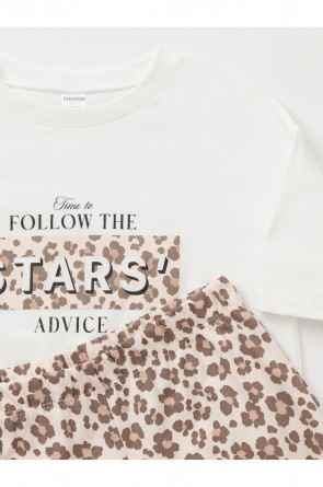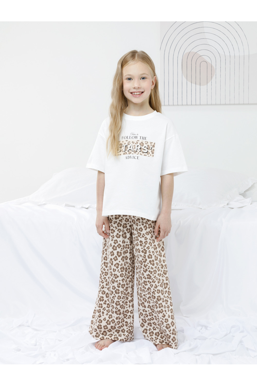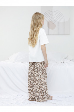 Трикотажная пижама из натурального хлопка для комфортного сна и отдыха. Свободная футболка с короткими спущенными рукавами и широкие брюки с мягкой эластичной резинкой в поясе. Оригинальный принт и набивка выполнены из стойких текстильных гипоаллергенных красителей. Изделие сохраняет цвет и форму после многократных стирок. Все трикотажные полотна производятся в соответствии с нормами швейцарского сертификата ЭкоТекс.