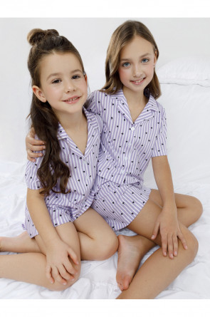 Трикотажная пижама из натурального хлопка для комфортного сна и отдыха. Рубашка на пуговицах с короткими рукавами и свободные шорты с мягкой эластичной резинкой в поясе. Набивной рисунок выполнен из стойких текстильных гипоаллергенных красителей. Изделие сохраняет цвет и форму после многократных стирок. Все трикотажные полотна производятся в соответствии с нормами швейцарского сертификата ЭкоТекс.