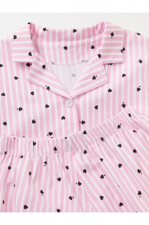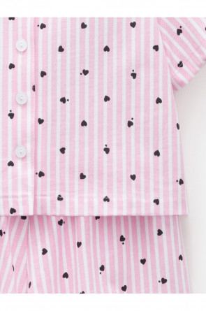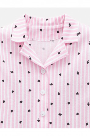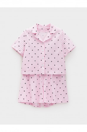 Трикотажная пижама из натурального хлопка для комфортного сна и отдыха. Рубашка на пуговицах с короткими рукавами и свободные шорты с мягкой эластичной резинкой в поясе. Набивной рисунок выполнен из стойких текстильных гипоаллергенных красителей. Изделие сохраняет цвет и форму после многократных стирок. Все трикотажные полотна производятся в соответствии с нормами швейцарского сертификата ЭкоТекс.